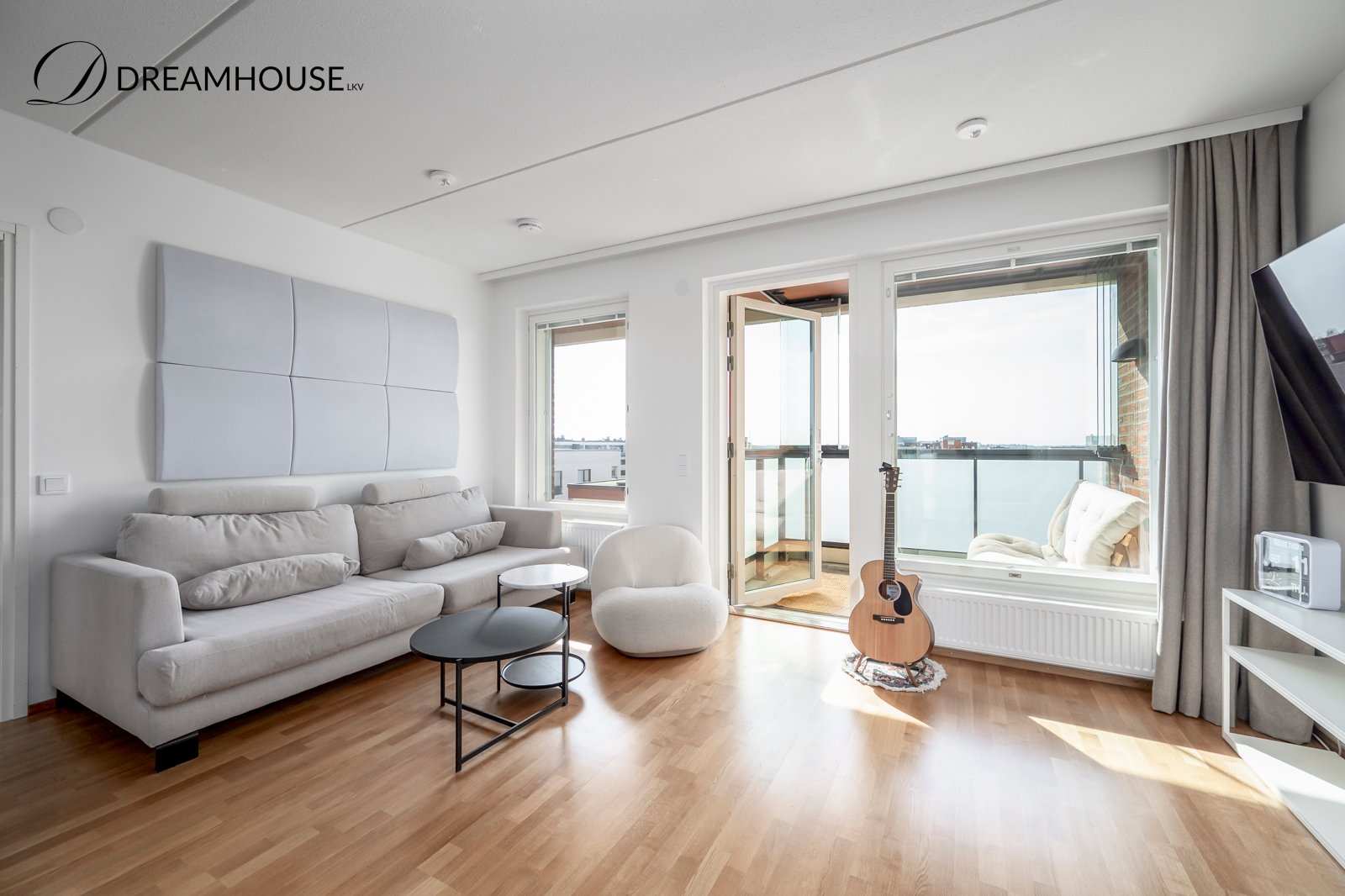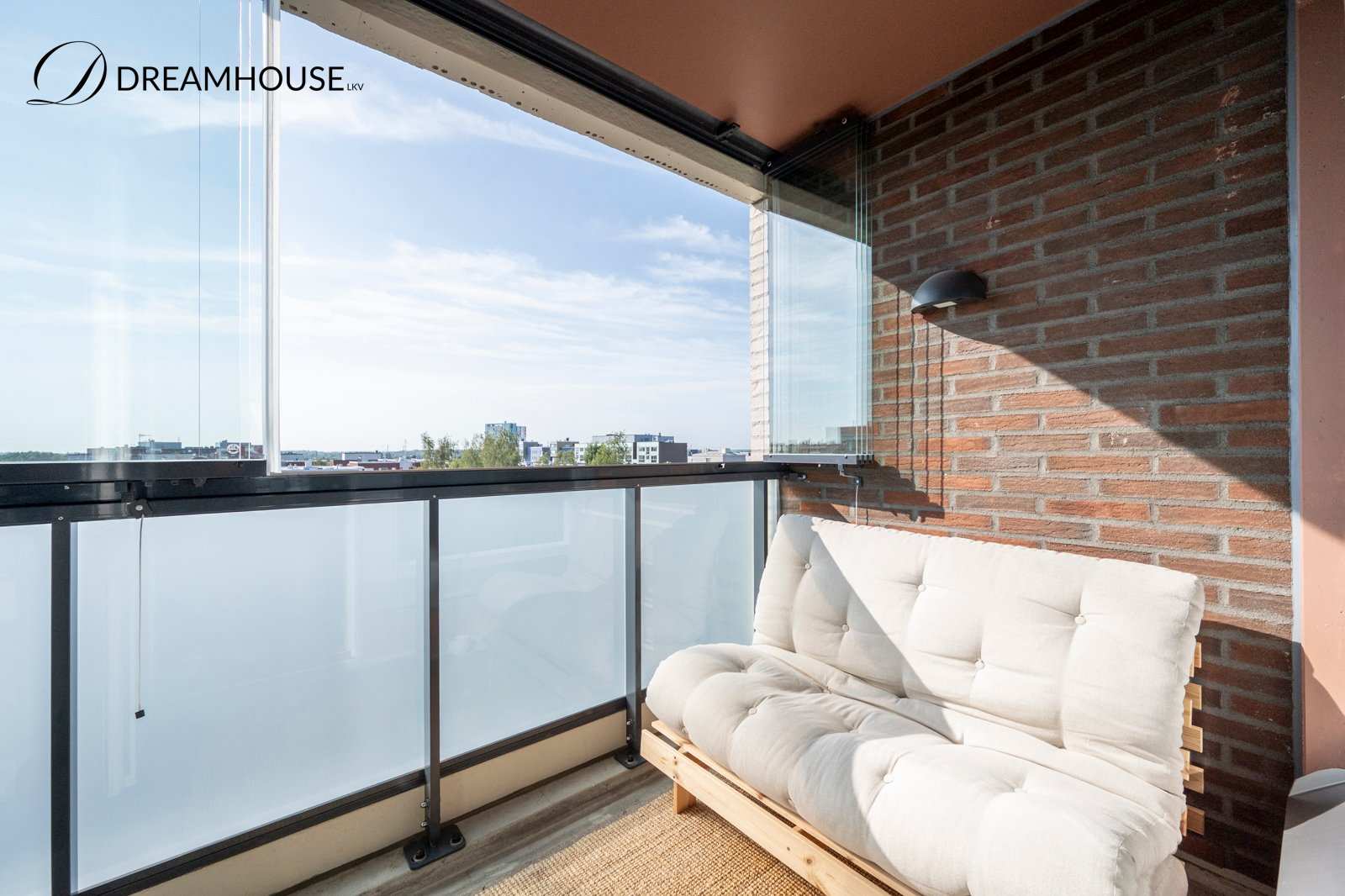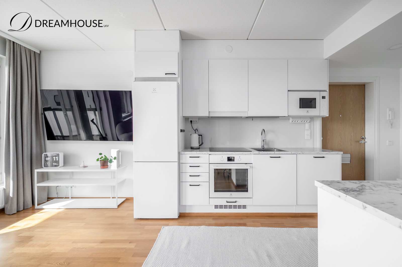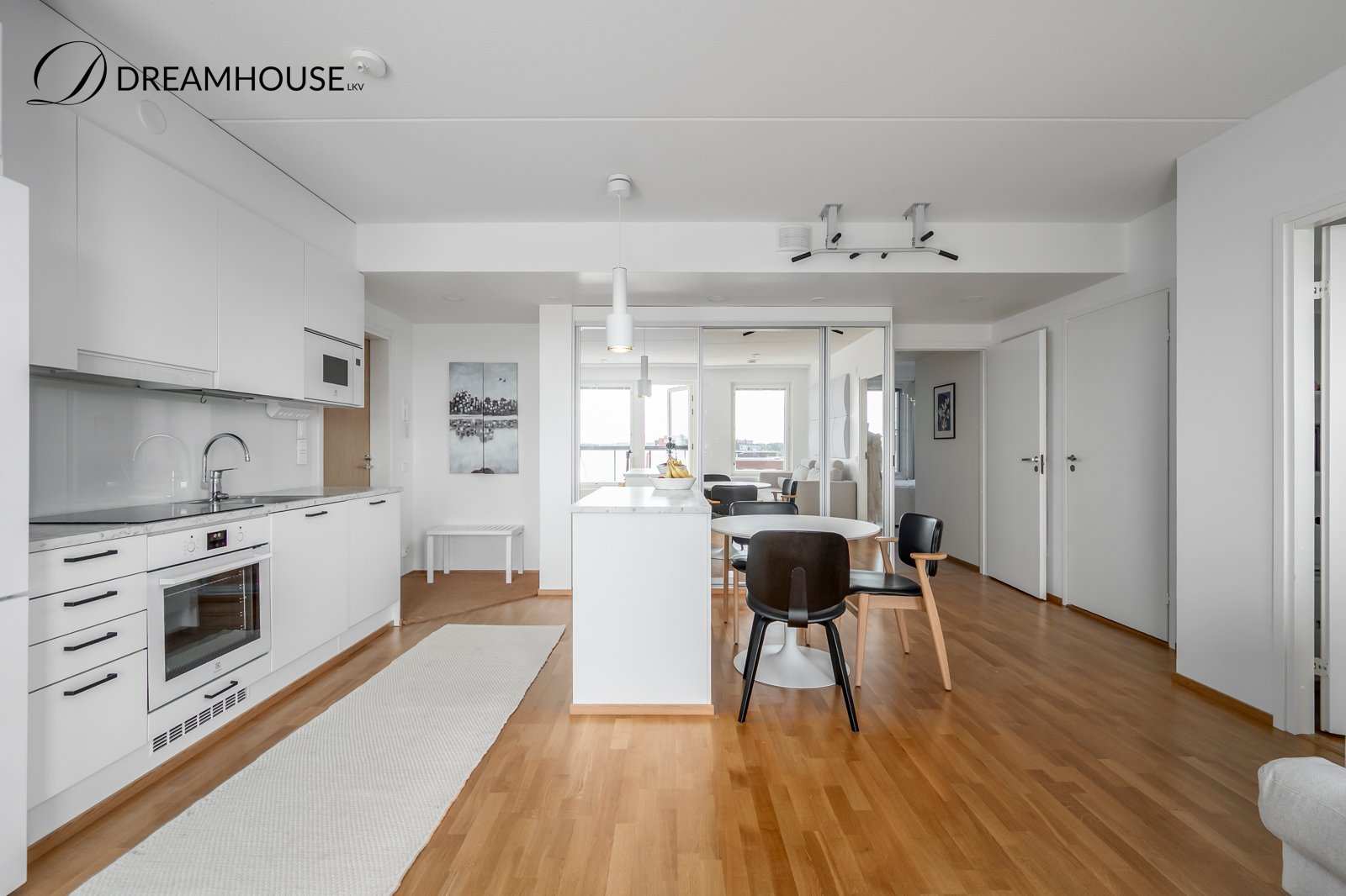 Tilavan olohuoneen yhteydessä moderni avokeittiö, jossa on laadukkaat kodinkoneet sekä käytännöllinen keittiösaareke. Lasitetulla parvekkeella voit nauttia aamukahvit tai rentoutua pitkän päivän päätteeksi.
