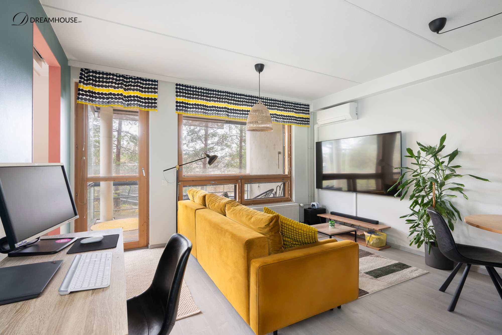 Valoisa ja kaunis kaksio, jossa on kaikki kohdallaan! Avokeittiö avautuu olohuoneeseen luoden tilavan ja kodikkaan kokonaisuuden - täydellinen paikka yhdessäoloon ja arjen eloon. Olohuoneesta avautuu suuri lasitettu parveke tuoden lisää tilantuntua. Olohuoneessa on ilmalämpöpumppu luomaan asumismukavuutta.