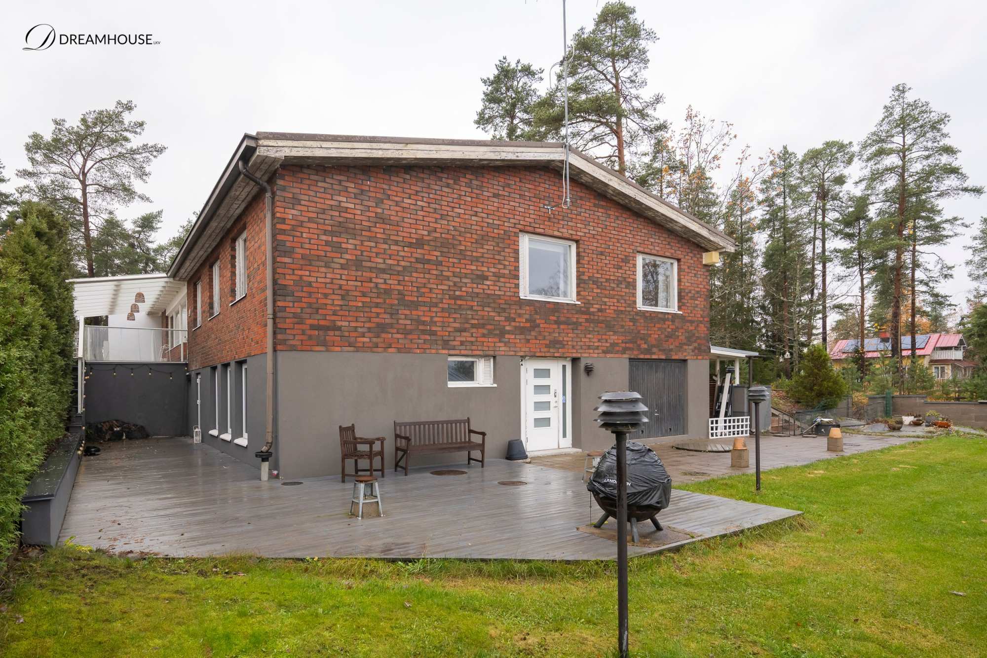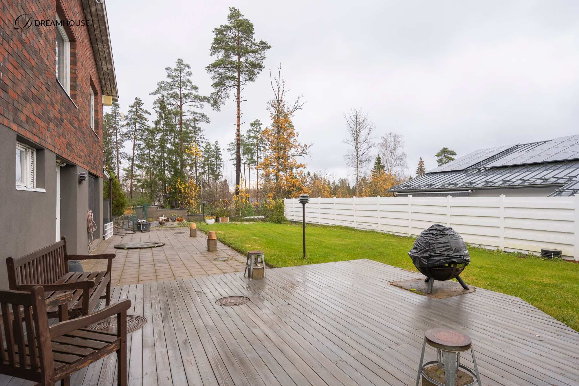 Piha-alue on yksi kodin merkittävistä vahvuuksista. Suojaisa takapiha, sisäuima-allas sekä useat terassit talon eri puolilla muodostavat poikkeuksellisen viihtyisän ja monikäyttöisen kokonaisuuden.