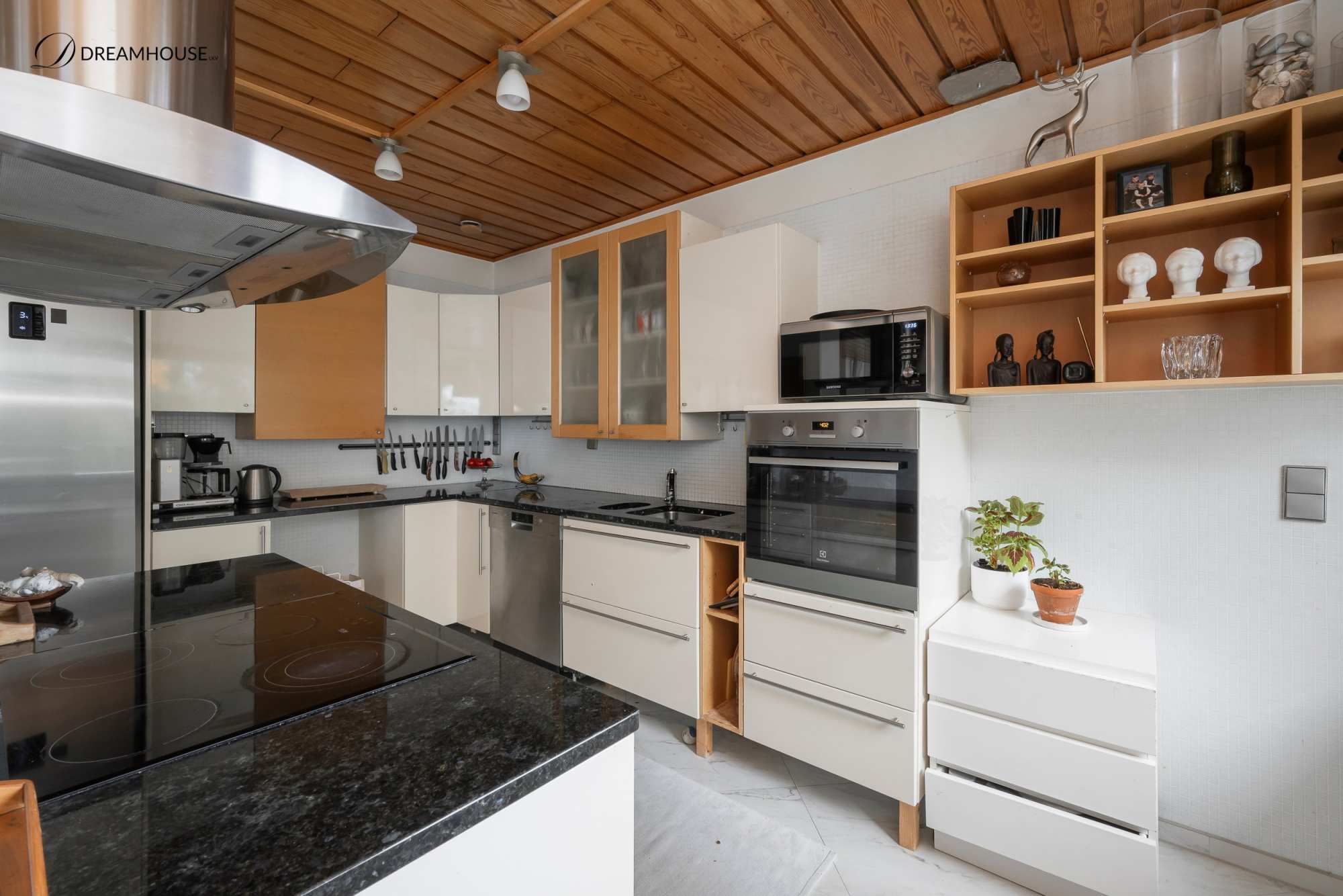| Keittiön varusteet | Jääkaappi, erillinen pakastin, uuni, liesi, keittiösaareke, astianpesukone ja liesituuletin |