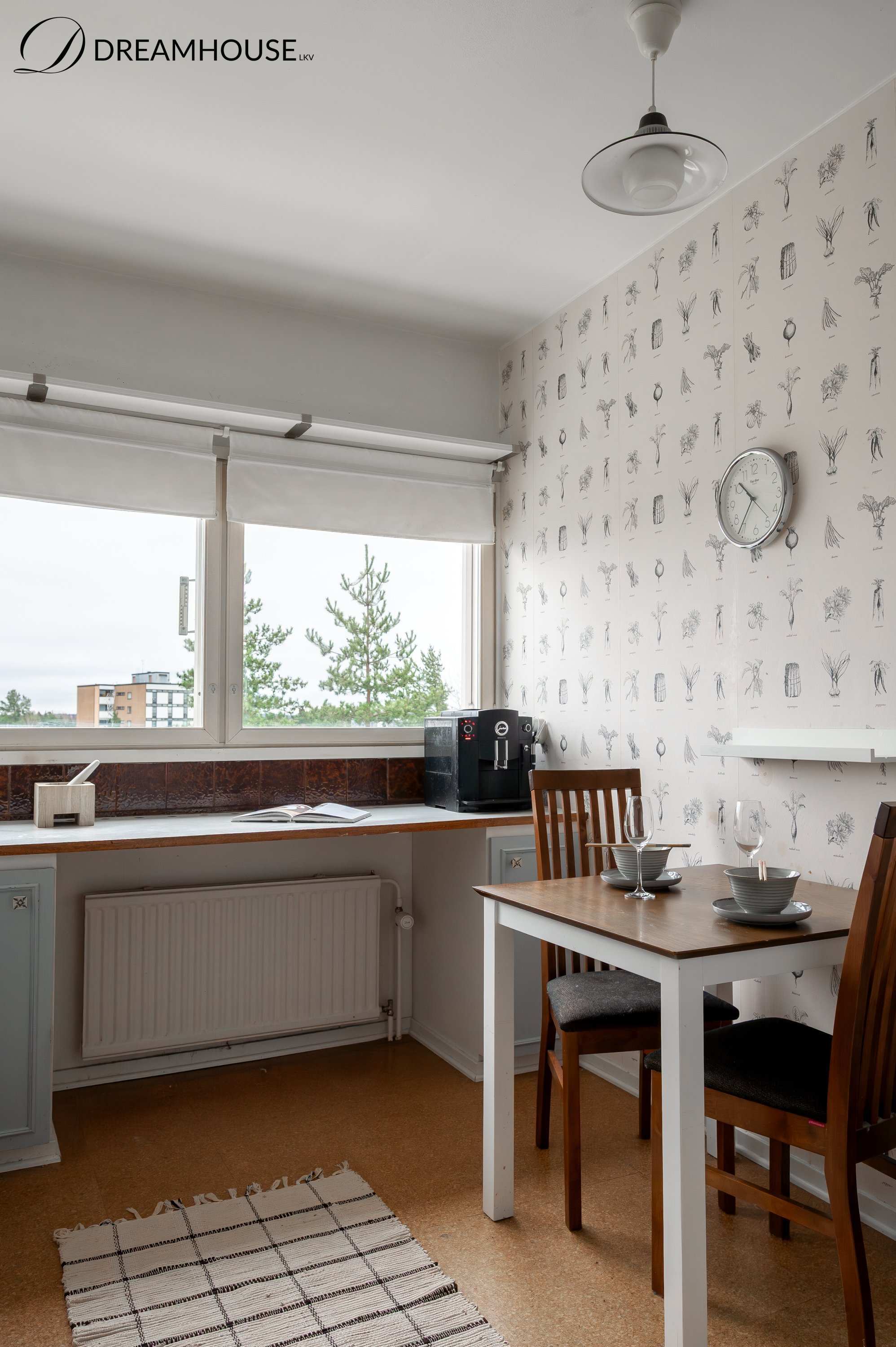 | Keittiön materiaalit | Lattia: Korkkimatto Seinät: Maali |