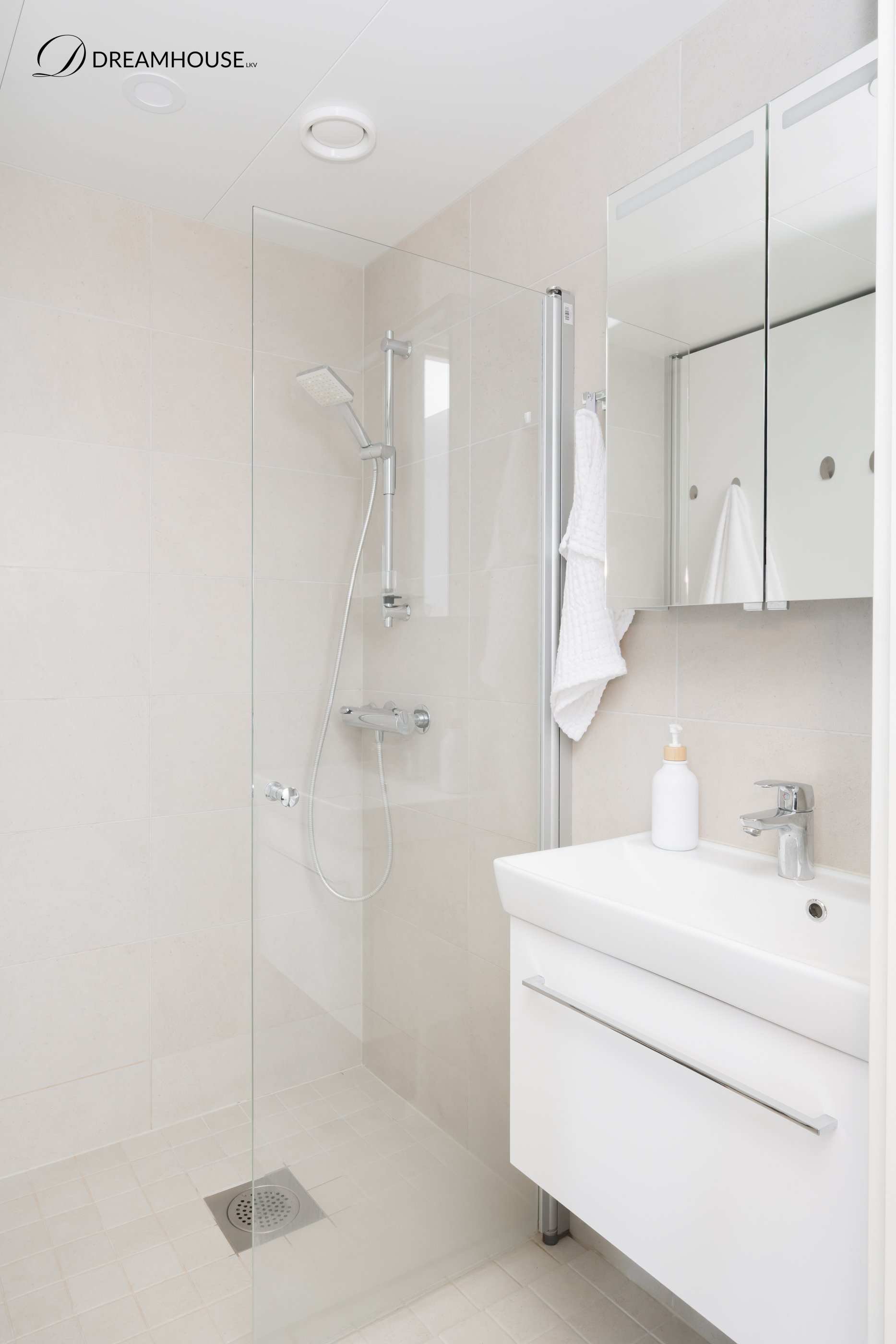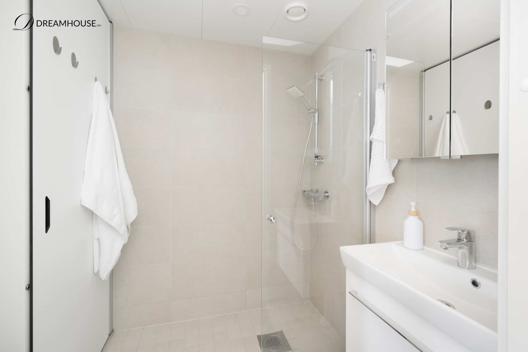 | Kylpyhuoneen varusteet | WC-istuin, suihku, peili, lattialämmitys, suihkuseinä, allaskaappi, pesukoneliitäntä, pesuallas ja bidee-suihku |