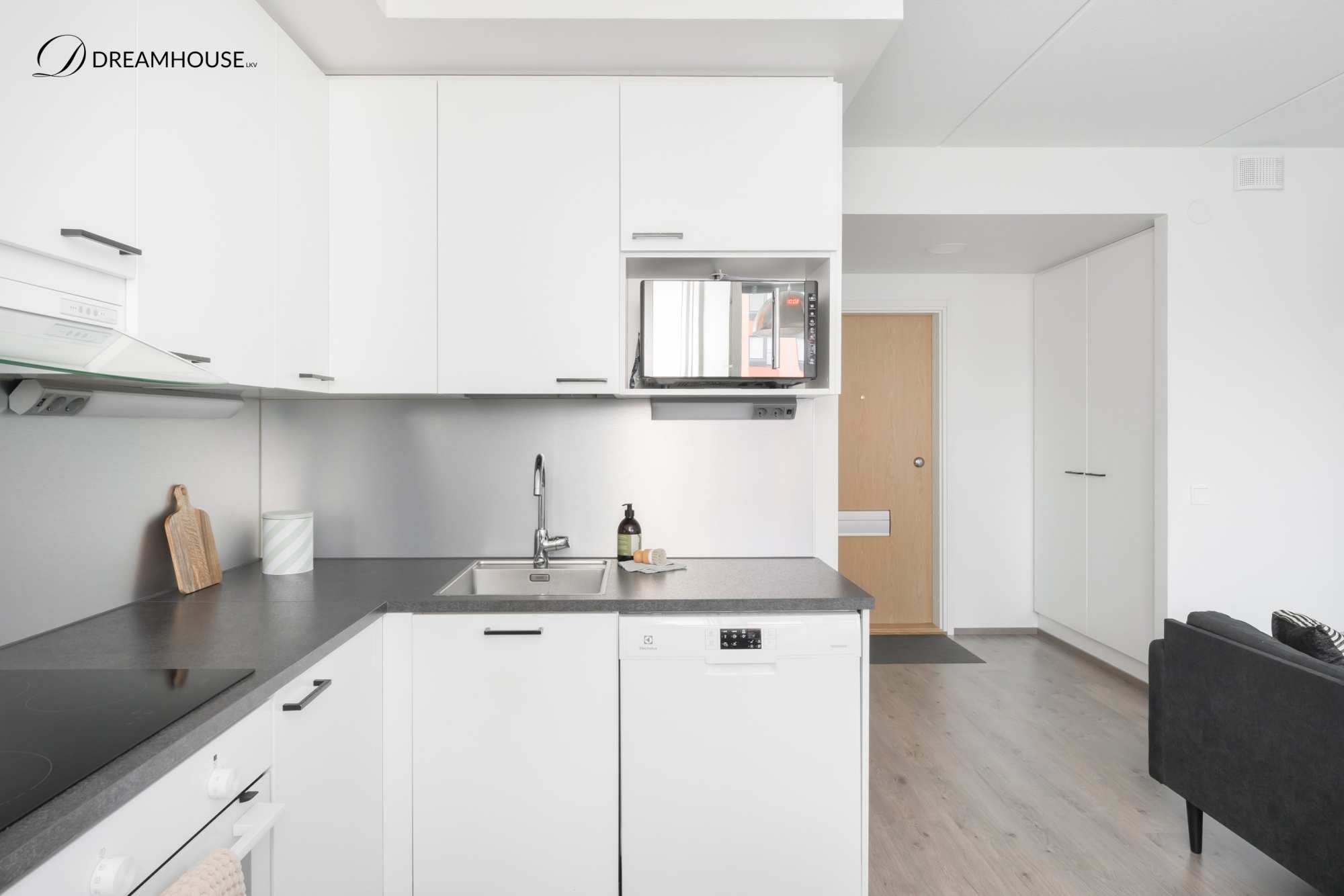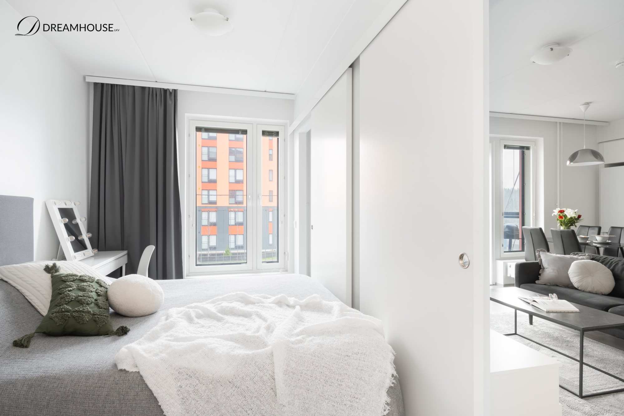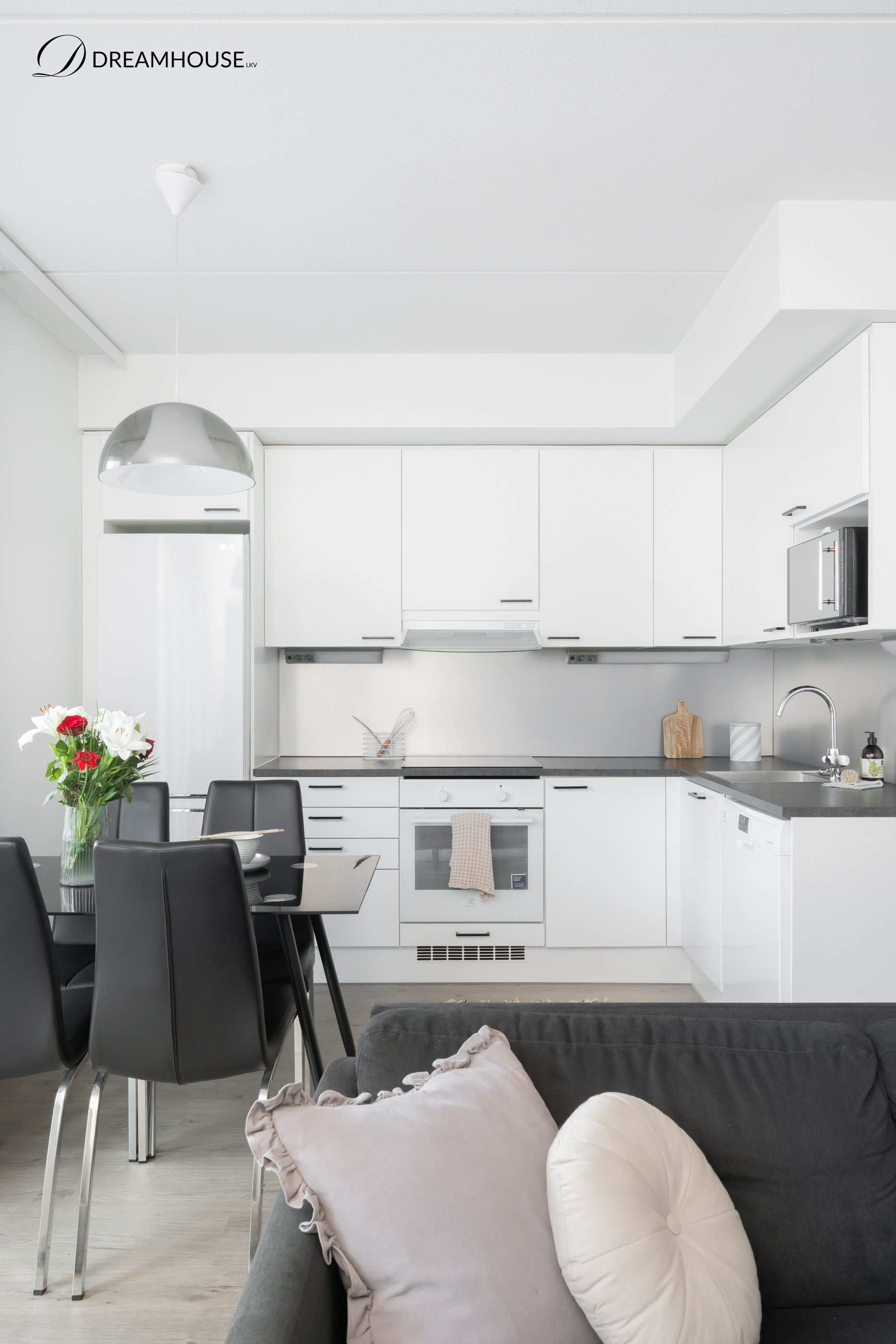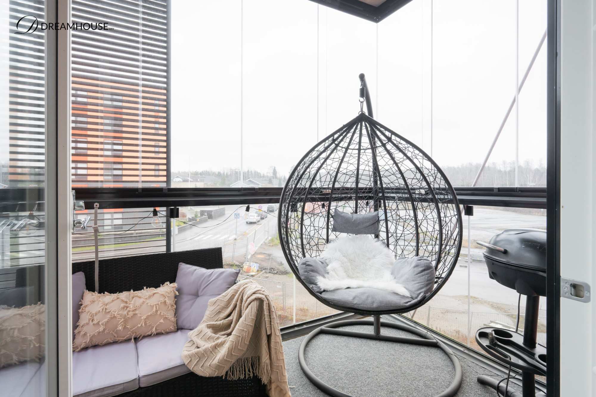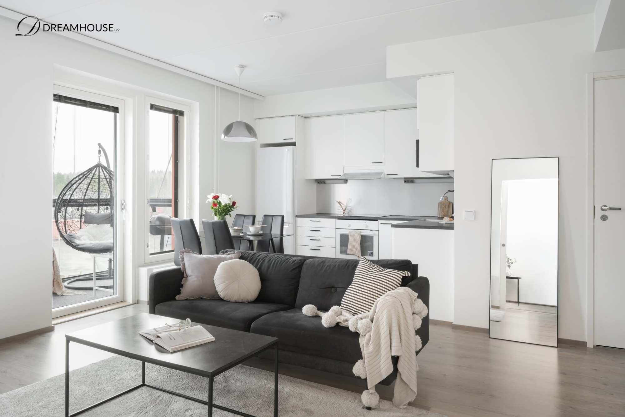 Asunnon valoisa olohuone sekä käytännöllinen keittiö muodostavat viihtyisän yhtenäisen tilan. Lisäksi asunnon suuret ikkunat, iso vaatehuone ja tilava lasitettu parveke mahdollistavat toimivan ja helpon arjen eri elämäntilanteessa olevalle.