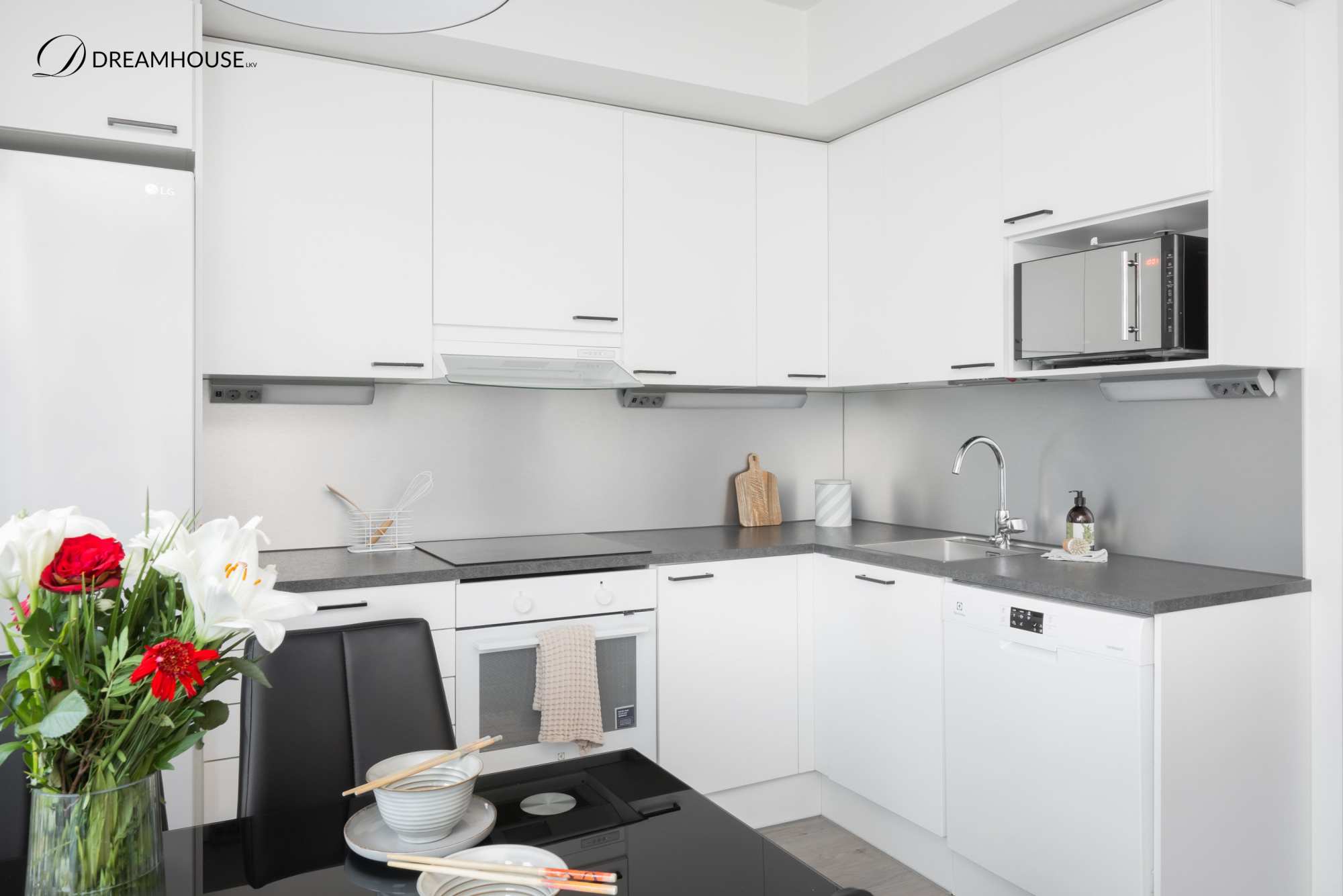 | Keittiön varusteet | Jääkaappipakastin, liesituuletin, astianpesukone, erillisuuni ja liesi |