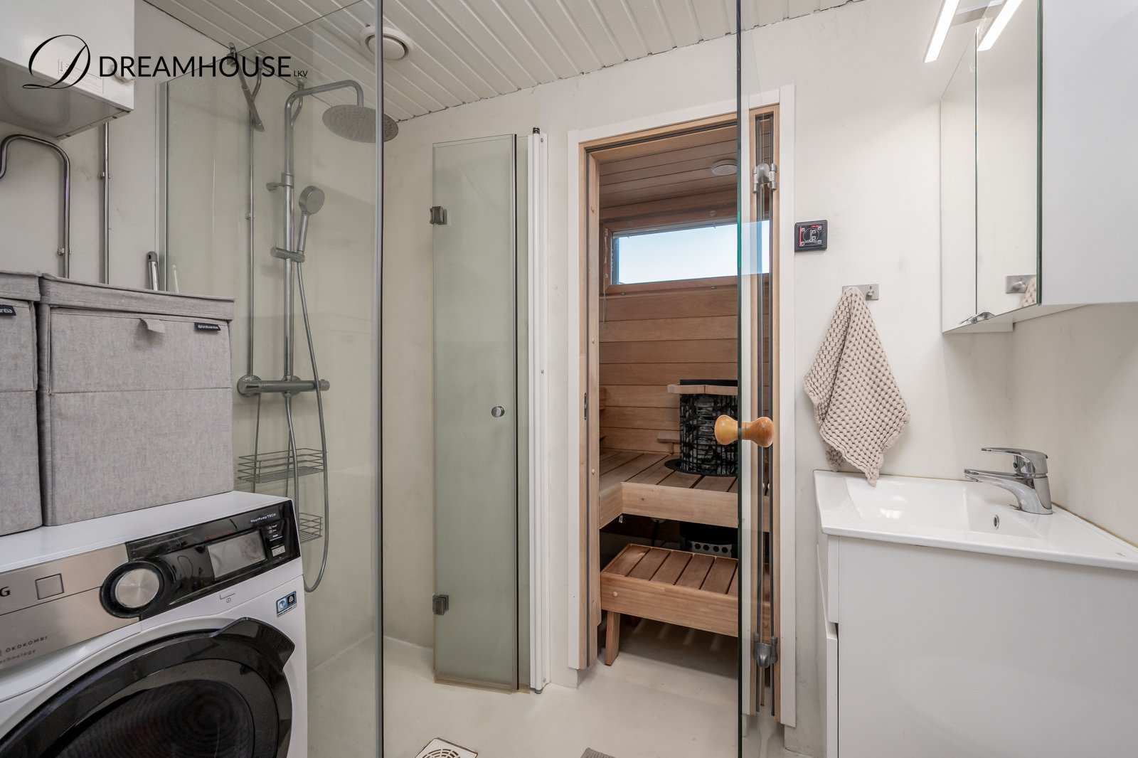 Yläkerrassa kolme tilavaa makuuhuonetta. parveke sekä iso aulatila. Tyylikäs kylpyhuone mikrosementoitu. Upea sauna remontoitu laadukkain materiaalein! Yläkerrassa lisäksi so aulatila sekä parveke.