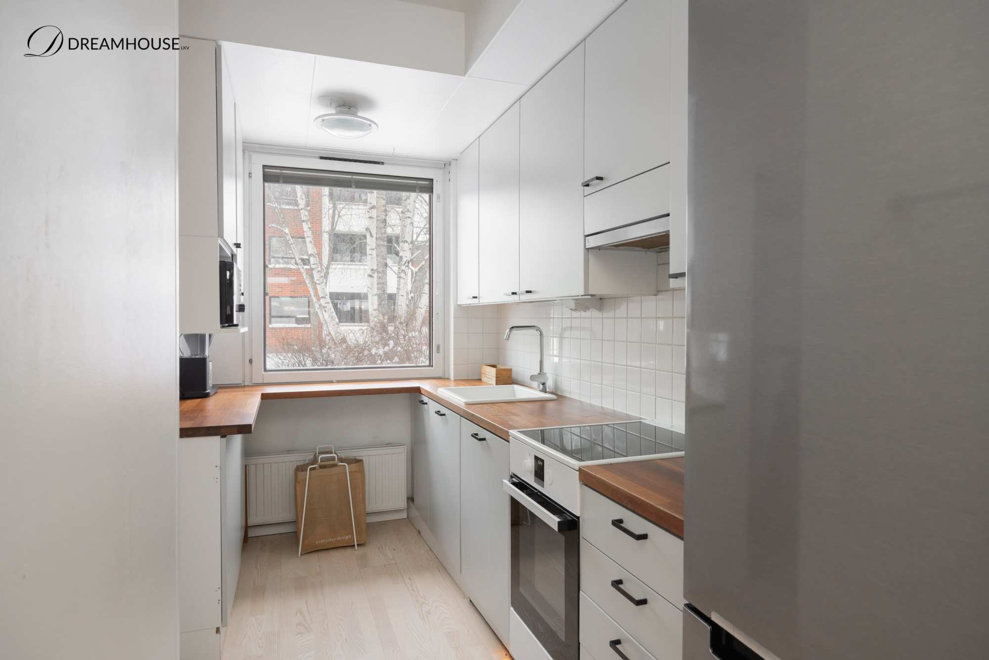 | Keittiön varusteet | Jääkaappipakastin, uuni, liesi, astianpesukone ja liesituuletin |
