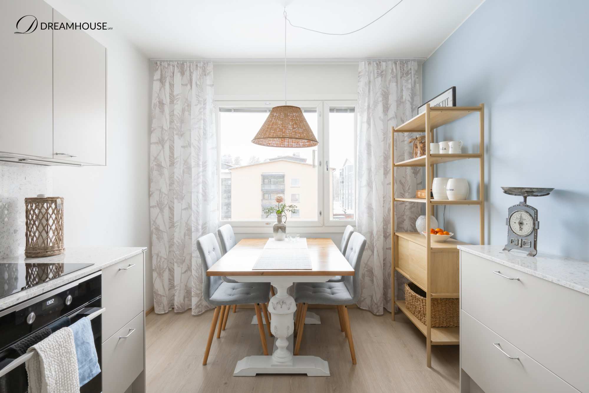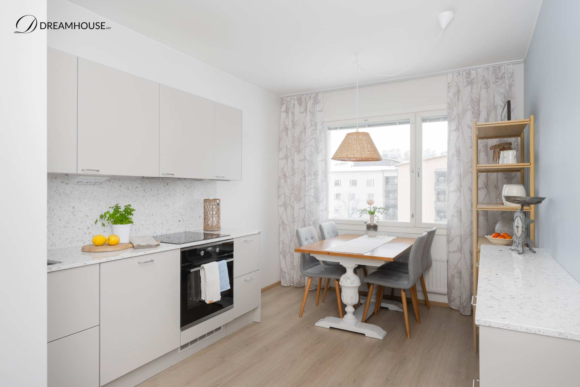| Keittiön materiaalit | Lattia: Vinyyli Seinät: Maali |