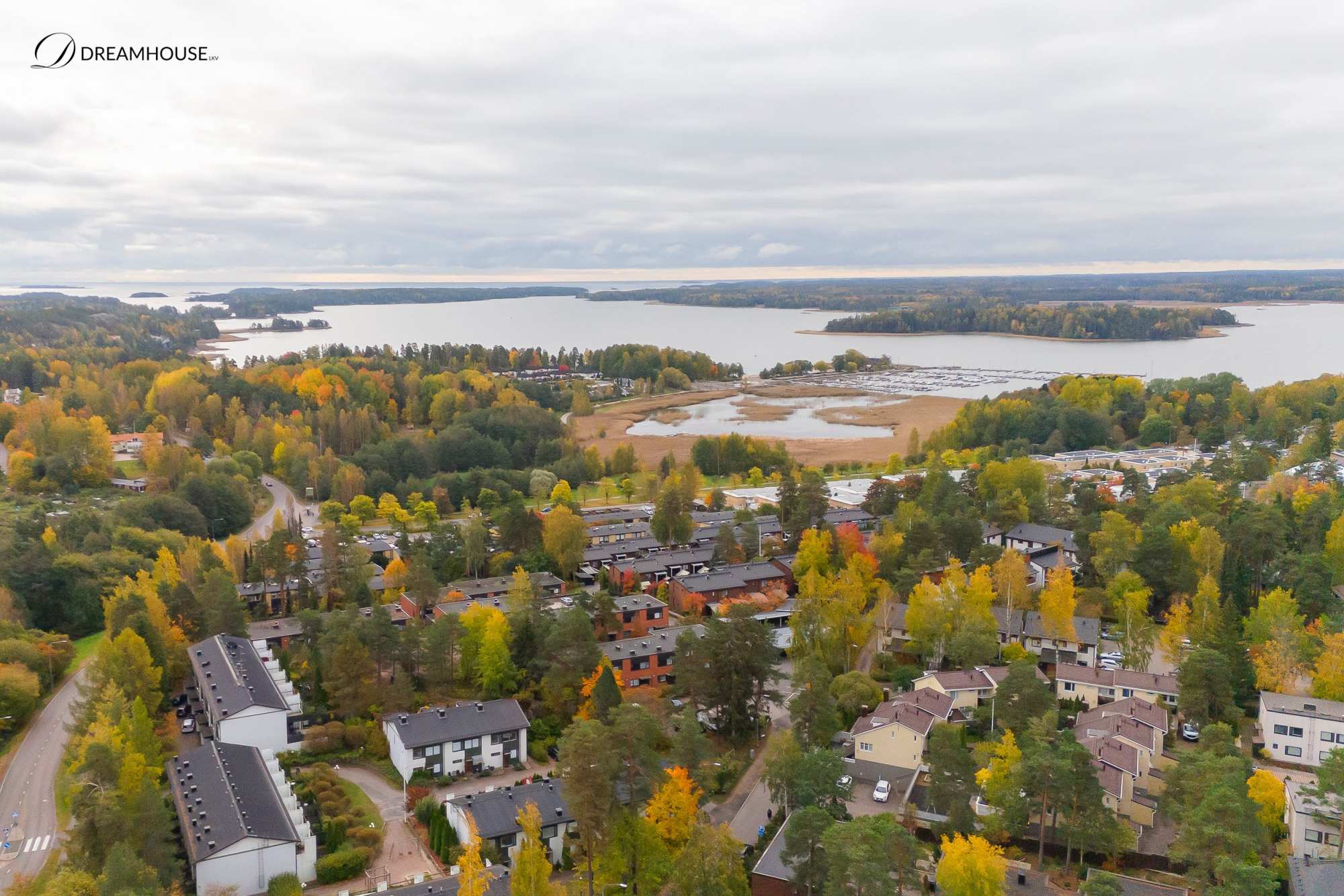 Tämän kodin sijainti on monien haaveilema, meren vieressä lähellä kaikkia palveluita. Kauppakeskus Lippulaiva on ihan lähellä ja länsimetron lähin pysäkki on lyhyen kävelymatkan päässä. Laurinlahti tunnetaan rauhallisena asuinalueena, jossa on hyvä koulu ja päiväkodit. Ruotsinkieliset koulut ovat myös ihan vieressä. Espoonlahden urheilupuisto ja rantaraitti ovat vain muutaman askeleen päässä. Asunnolle kuuluu autopaikka, kylmävarasto sekä lämmintä varastotilaa. Talo lämpiää kaukolämmöllä.