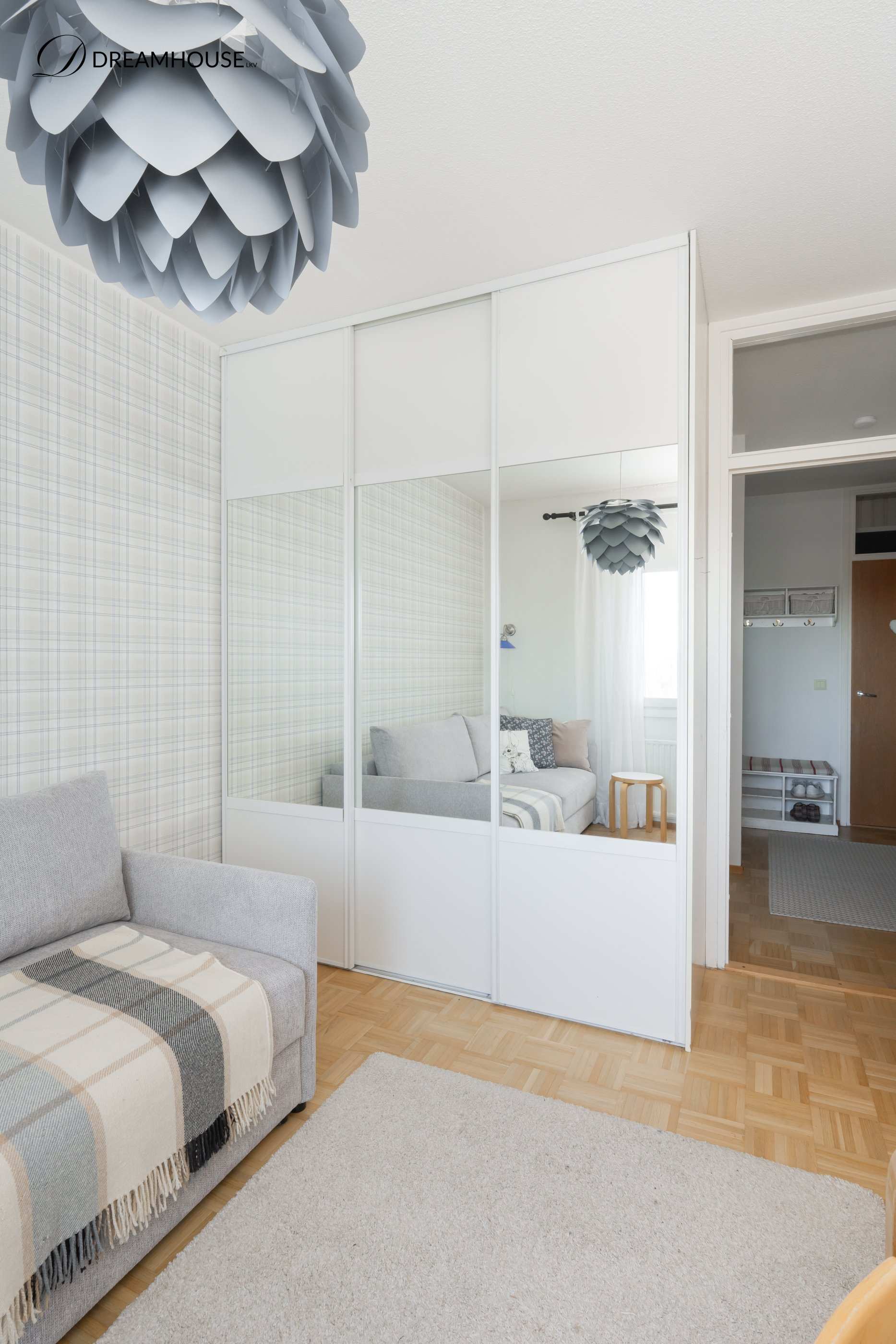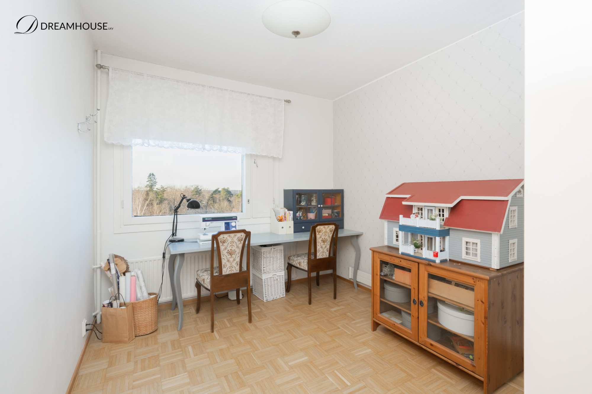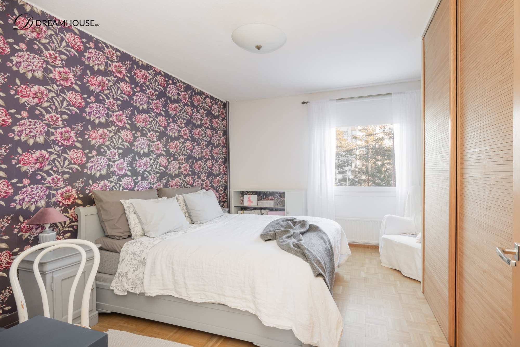 | Makuuhuoneen materiaalit | Lattia: Parketti Seinät: Maali ja tapetti |