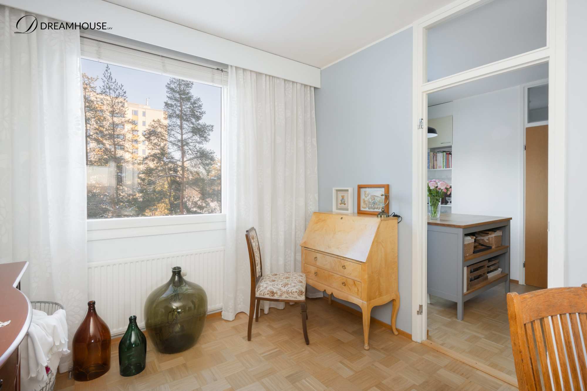 Olohuoneessa on avarat tilat oleskeluun ja käynti parvekkeelle. Lasitetulta parvekkeelta avautuu upea ja avara maisema, täällä vietät aikaa täysin omassa rauhassa. Asunnon perällä sijaitsevat kaksi makuuhuonetta omassa rauhassaan. Näiden välissä on tämän kodin toinen kylpyhuone.