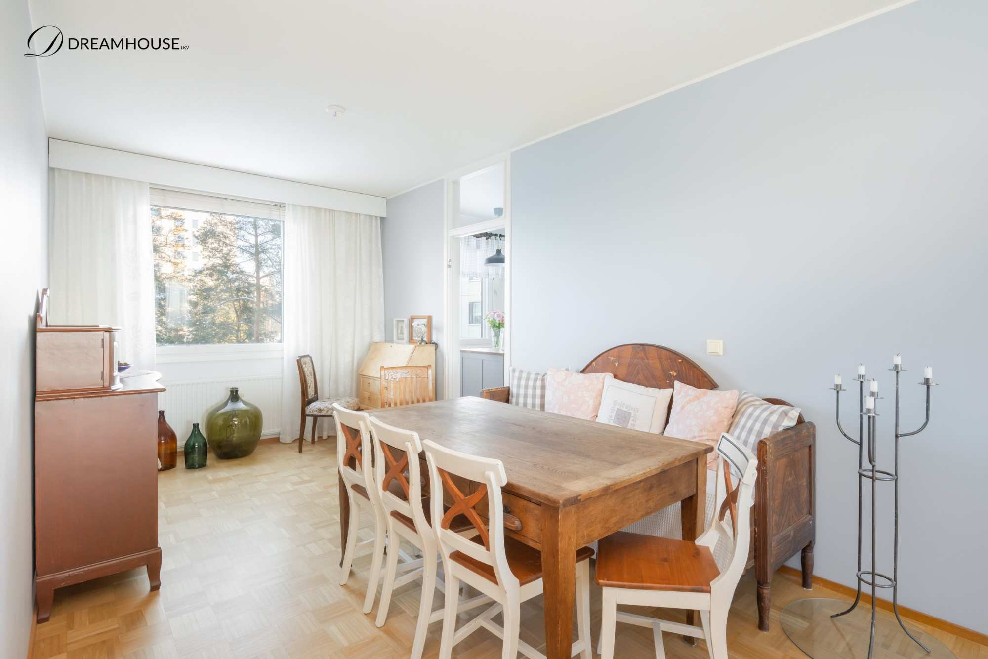 | Olohuoneen materiaalit | Lattia: Parketti Seinät: Maali |
