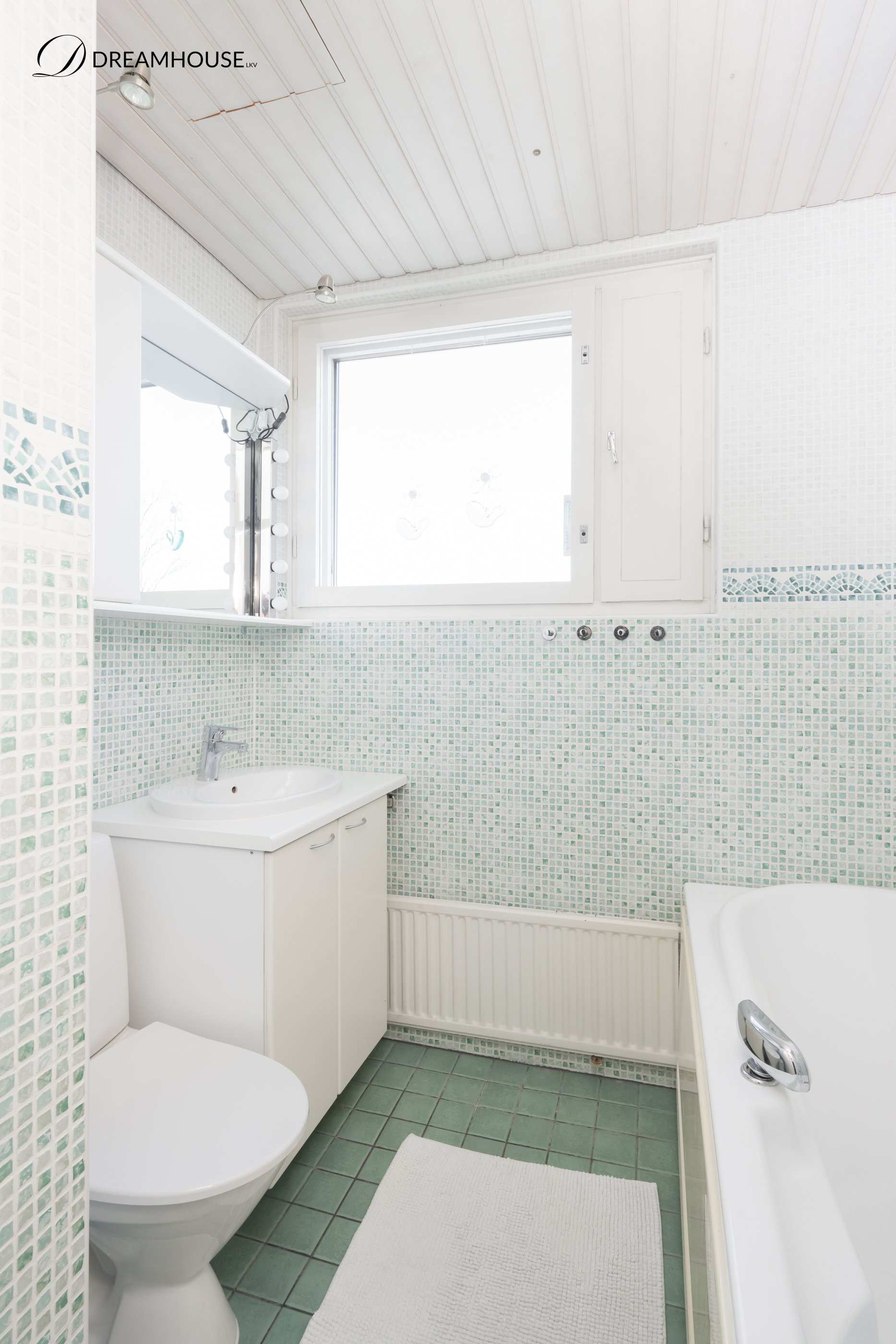 | Kylpyhuone | Uusittu putkiremontin yhteydessä vuonna 2014 Eteisen viereinen kph: Suihku, rättipatteri, allaskaapisto, peilikaapisto, wc-istuin, allas, hana Makuuhuoneiden viereinen kph: Kylpyamme, suihku, wc-istuin, allaskaapisto, allas, hana, peili, ikkuna |