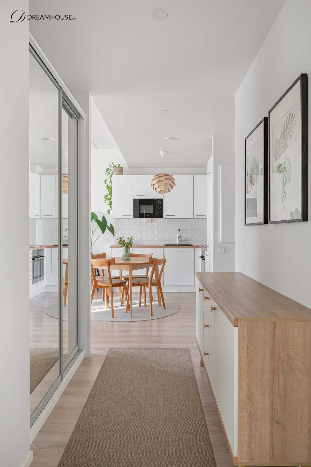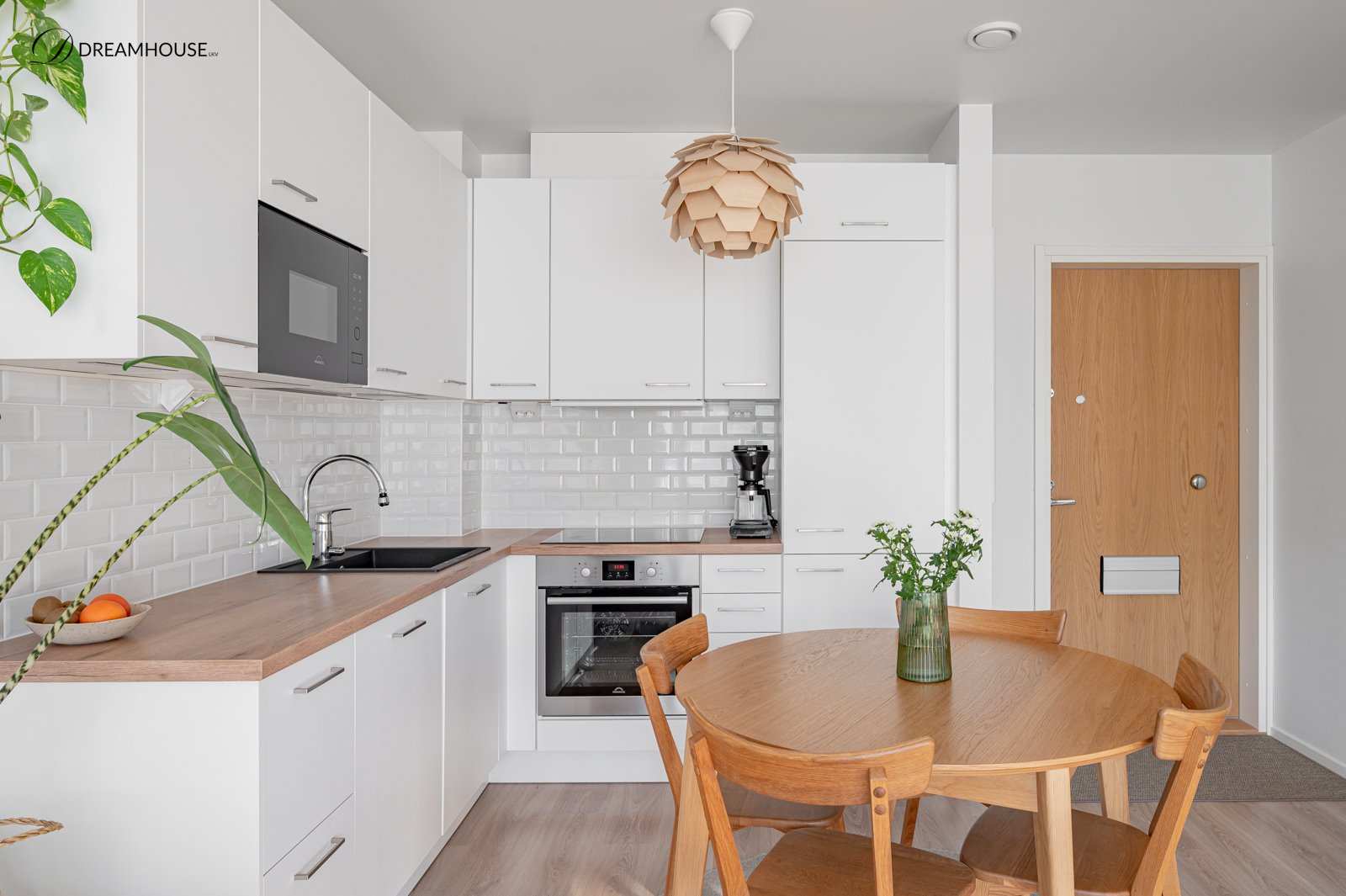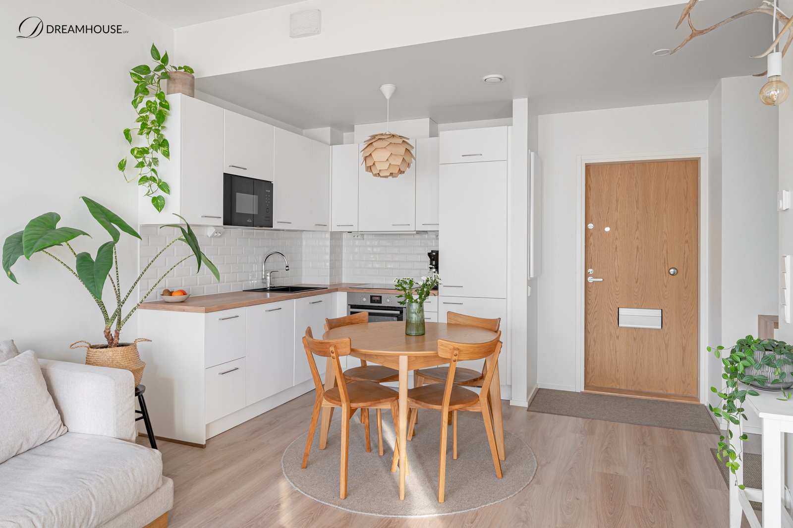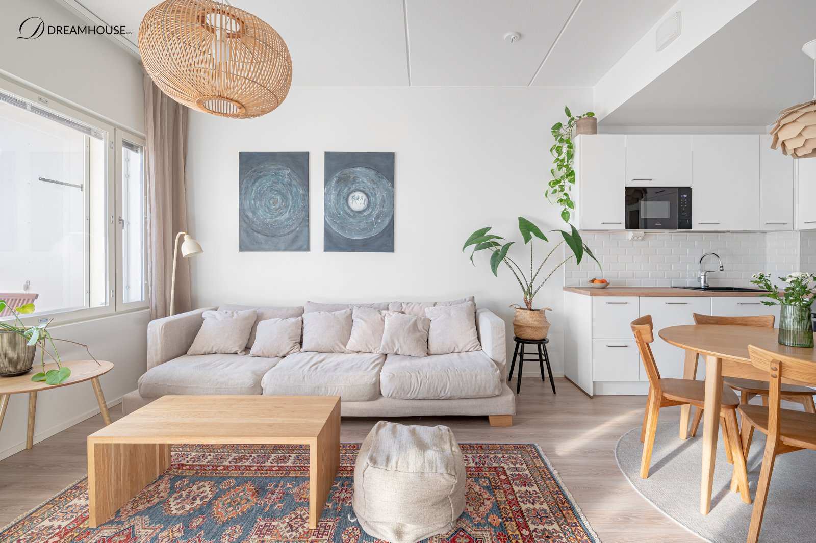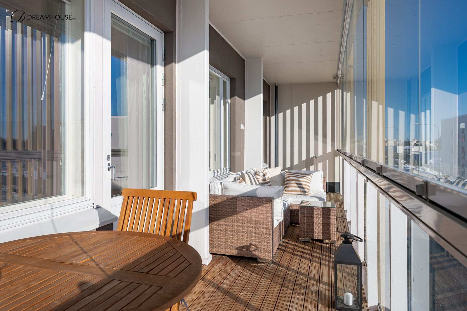 Tyylikäs ja moderni avokeittiö valoisan olohuoneen yhteydessä. Kaksi makuuhuonetta joista toisessa oma ovi parvekkeelle. Parveke on koko huoneiston levyinen jossa onkin mukava viettää aikaa. Asunnossa hyvin kaappitilaa sekä lisäksi iso vaatehuone. Tilava kylpyhuone jonne mahtuu hyvin pesutorni.