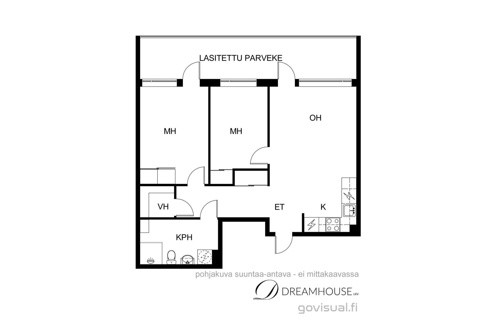 | Huoneistoselitelmä | 3h, k, kph, vh, parveke |