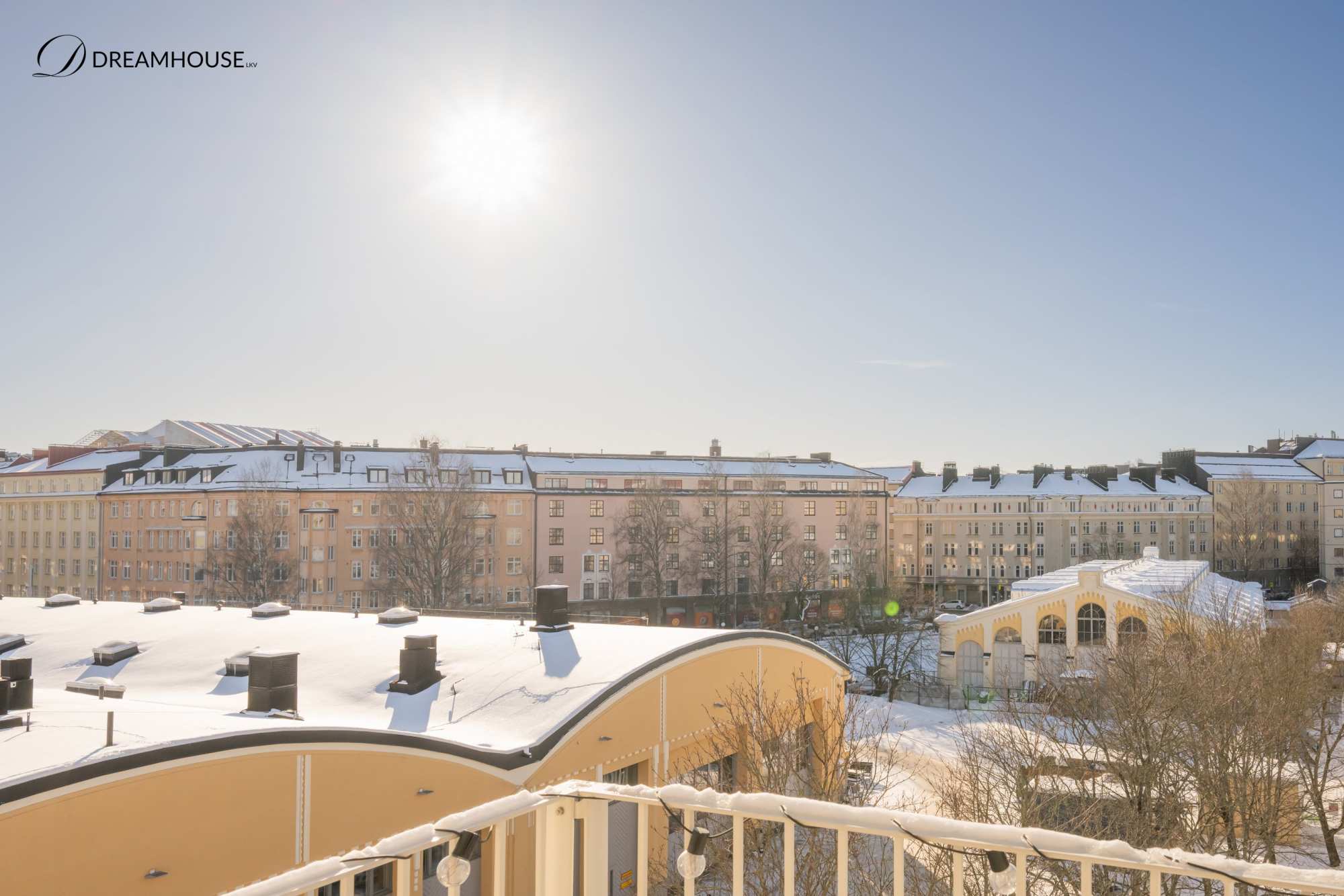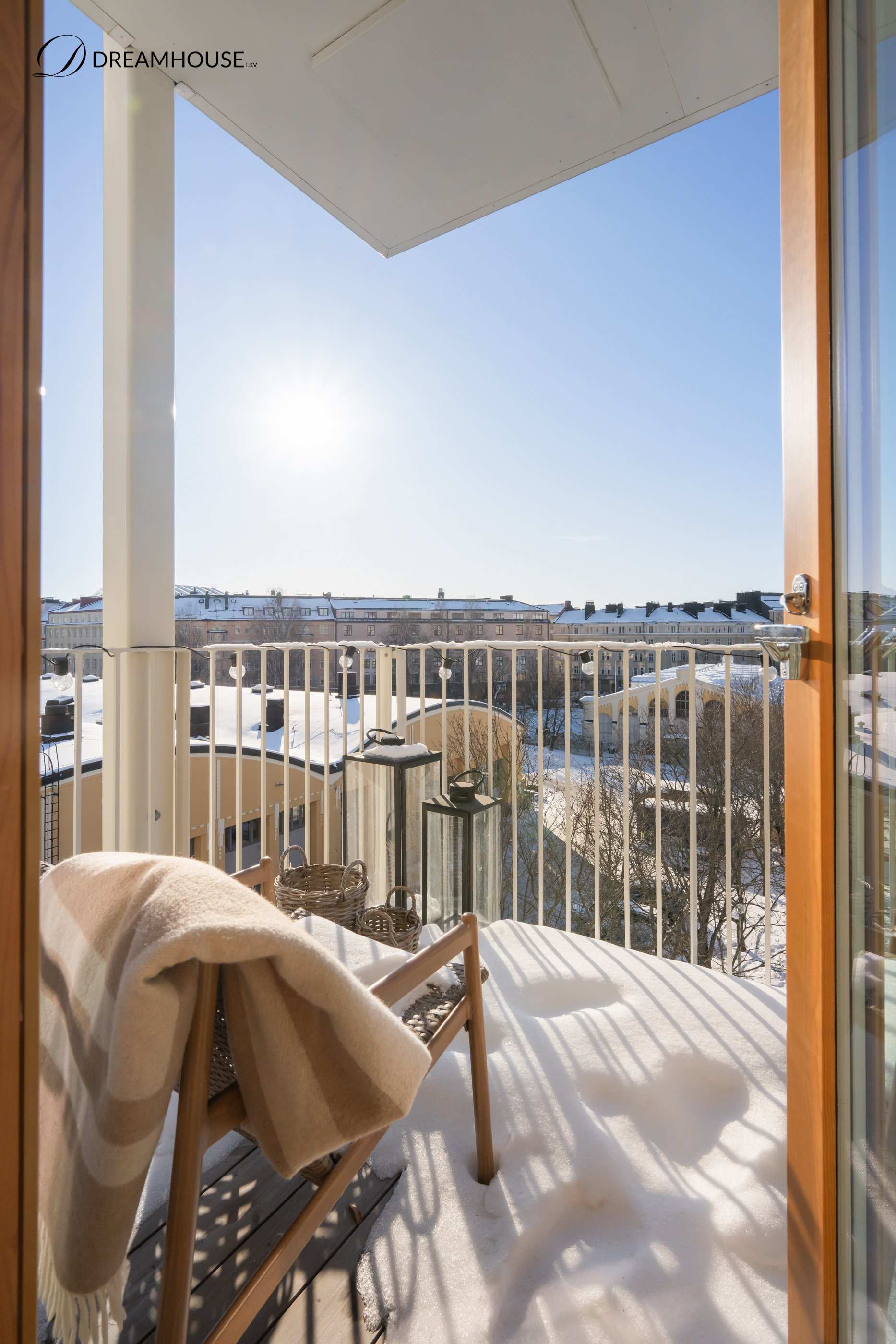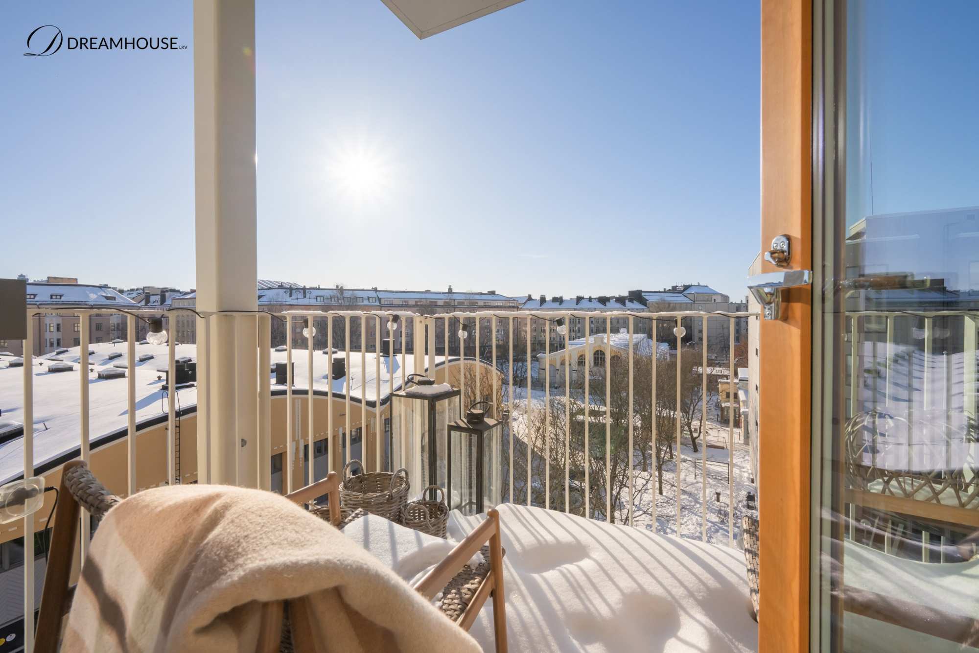 Tämä uskomattoman kaunis koti on täysin muuttovalmis eikä täältä puutu mitään! Valoisa viidennen kerroksen kaksio on kulmahuoneisto, josta on avarat näkymät kauas Helsingin kattojen ylle.