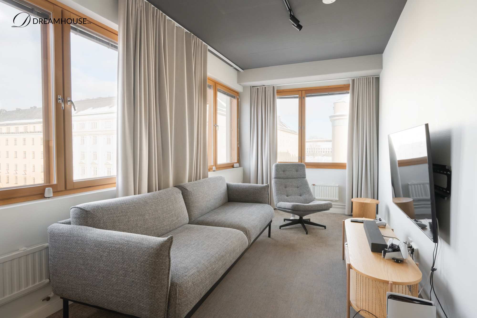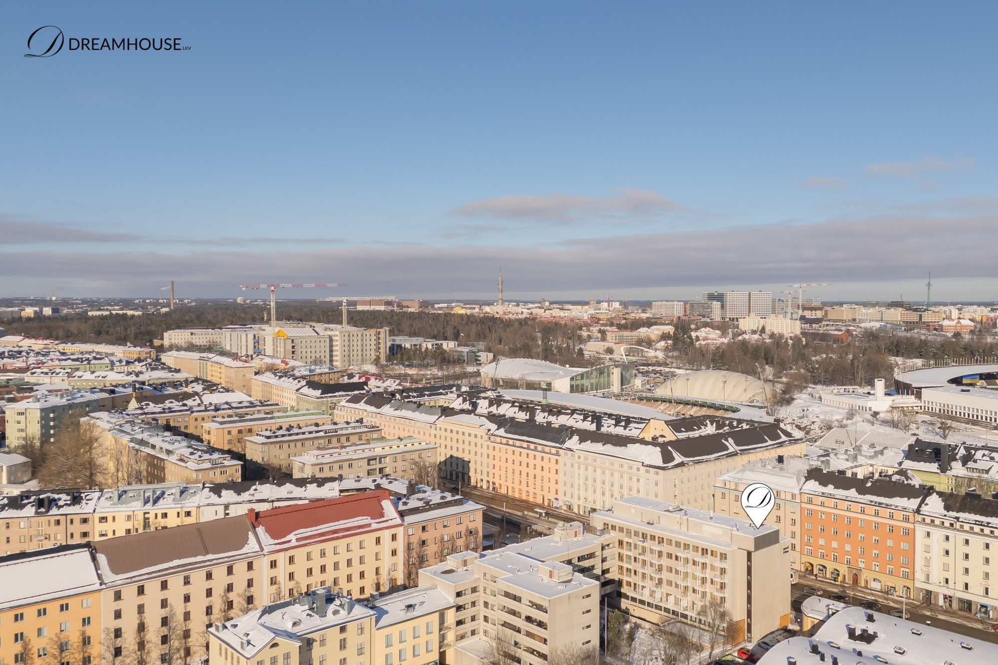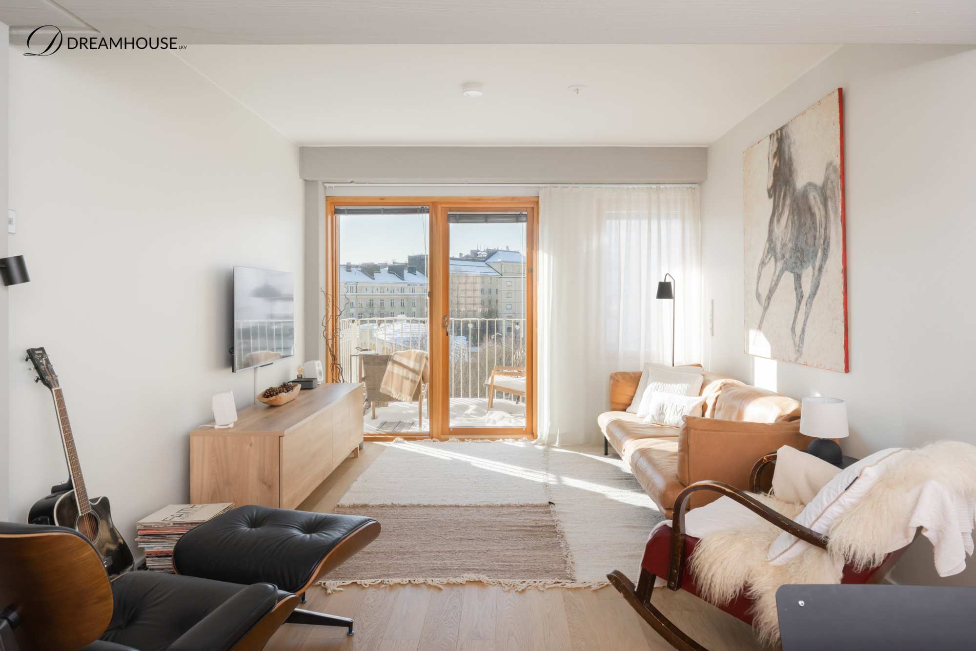 Tämä uskomattoman kaunis koti on täysin muuttovalmis eikä täältä puutu mitään! Valoisa viidennen kerroksen kaksio on kulmahuoneisto, josta on avarat näkymät kauas Helsingin kattojen ylle.