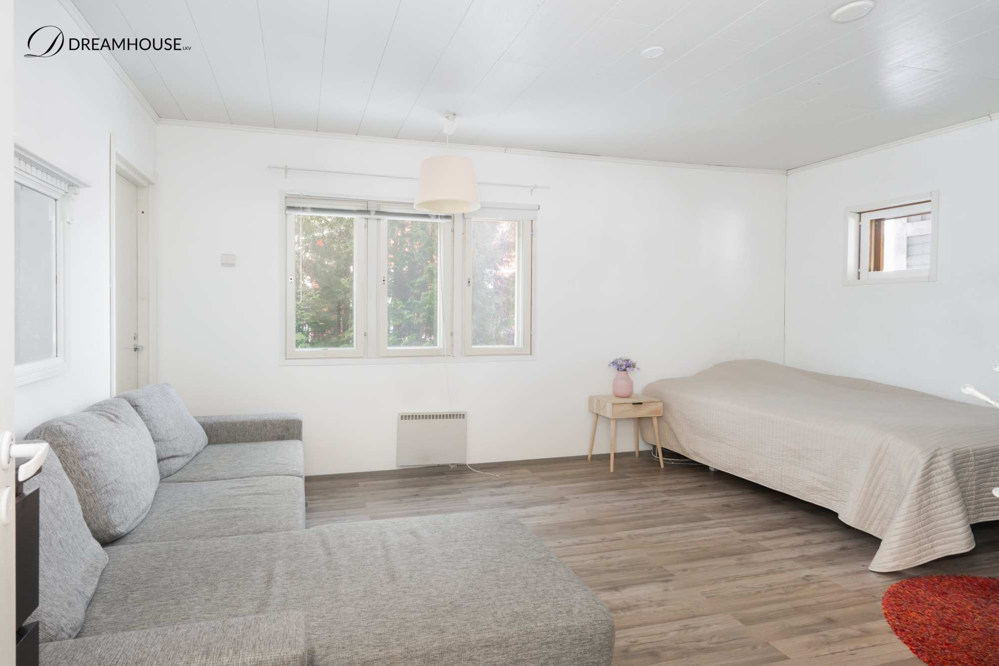 | Makuuhuoneen materiaalit | Lattia: Laminaatti Seinät: Maali ja tapetti |