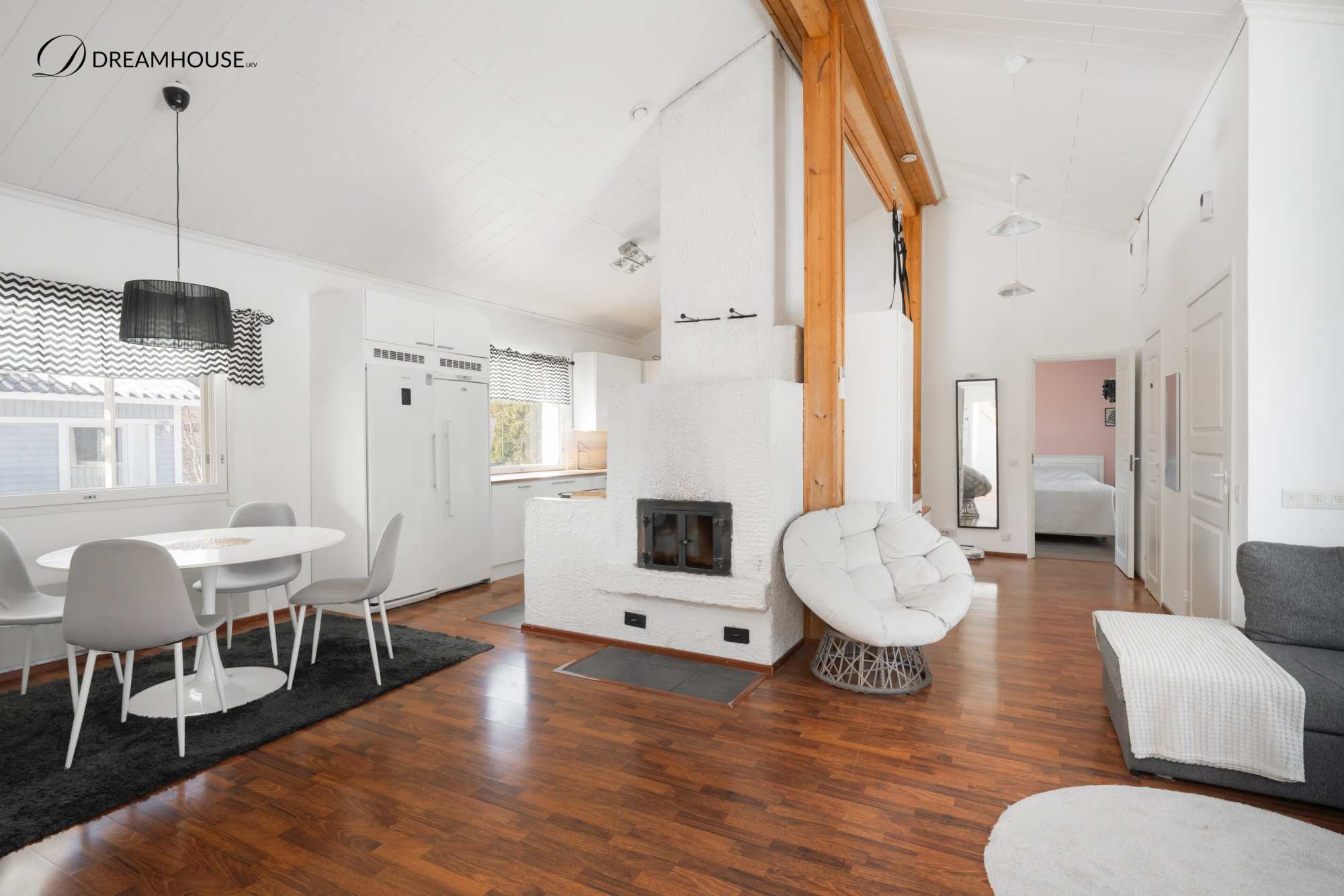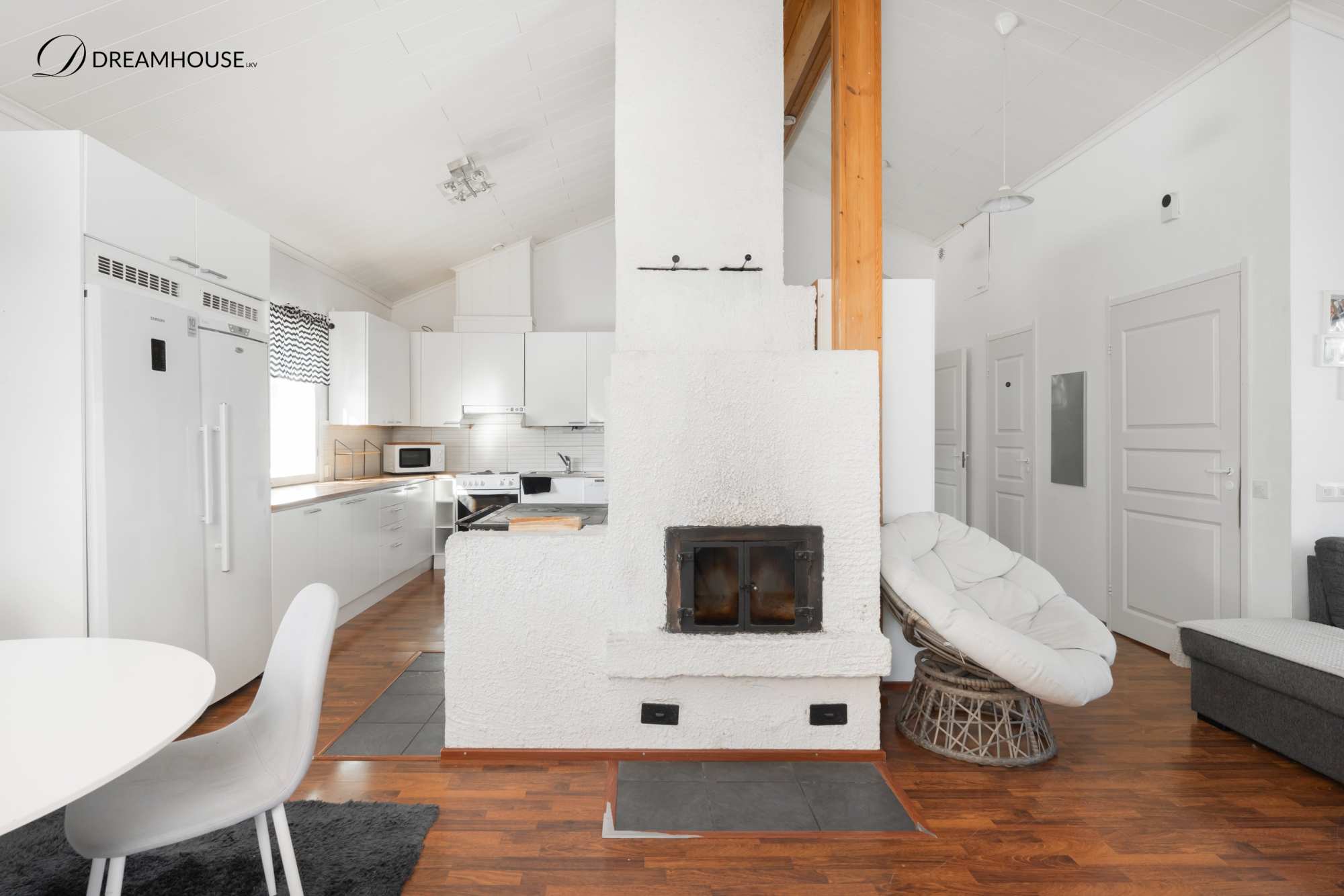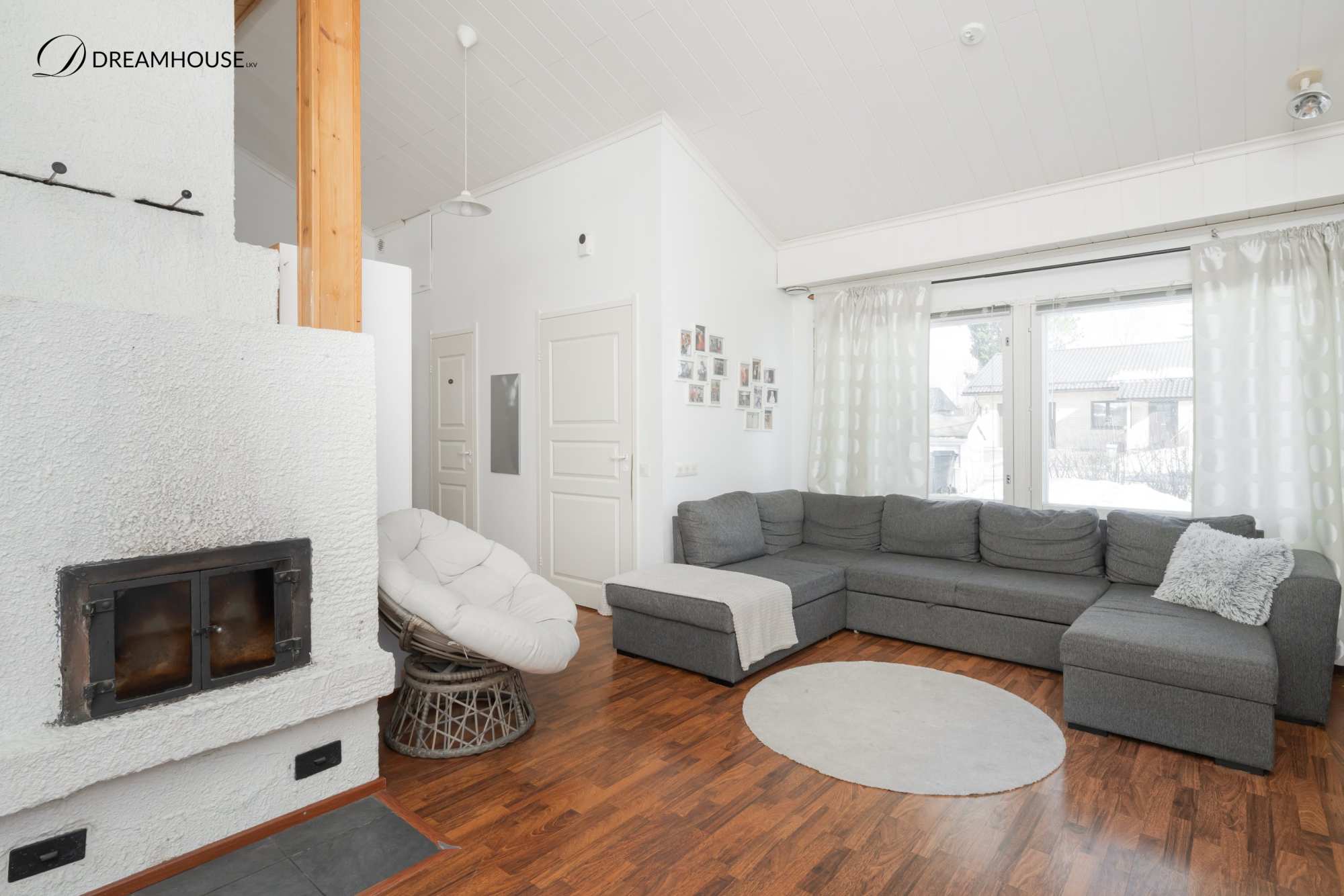Talo sijaitsee omalla tontilla ja sen 129 asuinpinta-alaa tarjoaa hyvin tilaa isommallekin perheelle. Kodissa on neljä makuuhuonetta, joista yhdessä on oma vaatehuone sekä suora uloskäynti pihalle – täydellinen esimerkiksi teinin huoneeksi, työtilaksi tai vierashuoneeksi. Valoisa olohuone kutsuu viihtymään, ja tunnelmaa luo varaava takka, joka tuo lämpöä ja kodikkuutta. Keittiöstä löytyy kaikki tarvittavat kodinkoneet arjen sujuvuuteen ja lisäksi puuhella ja leivinuuni!.
