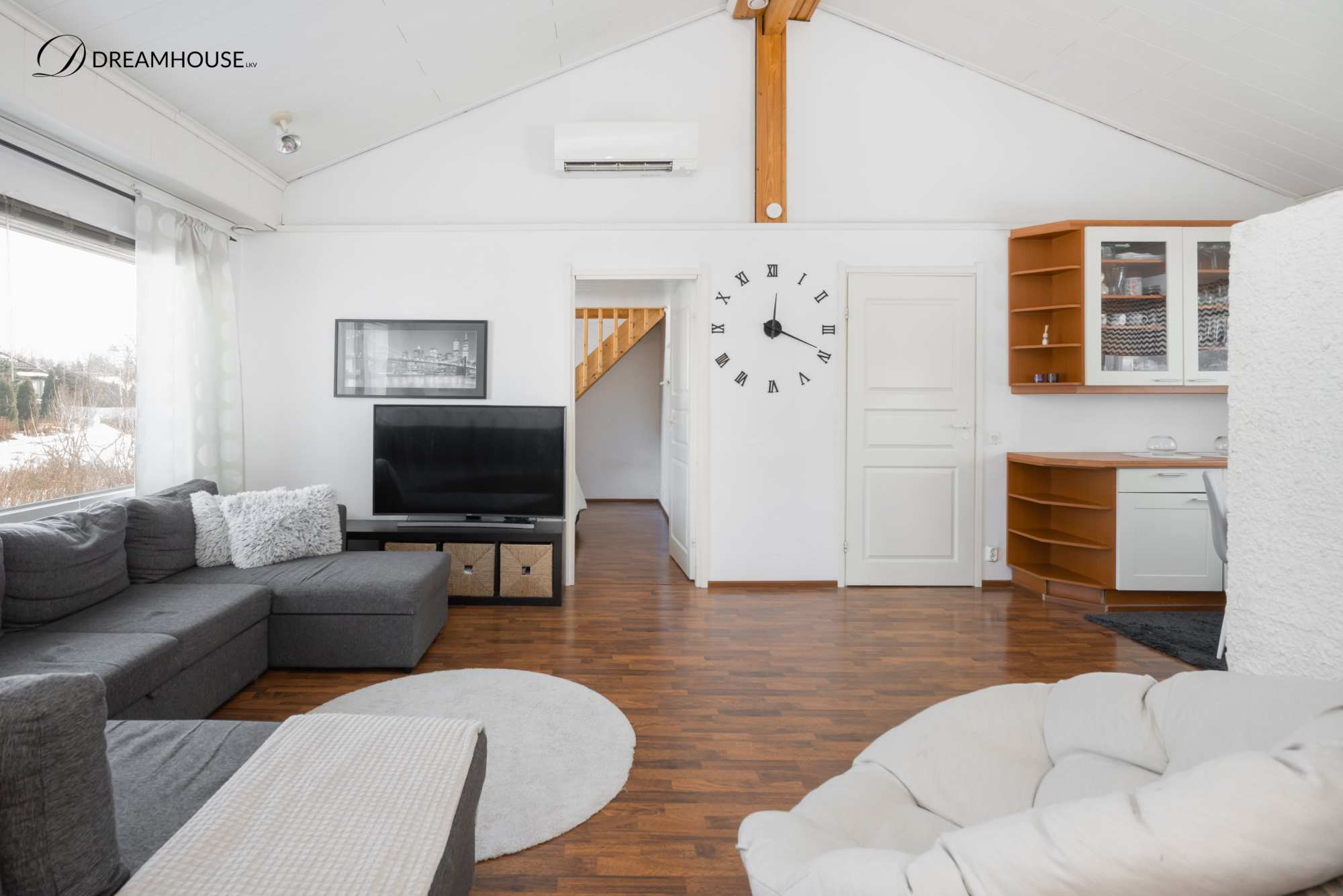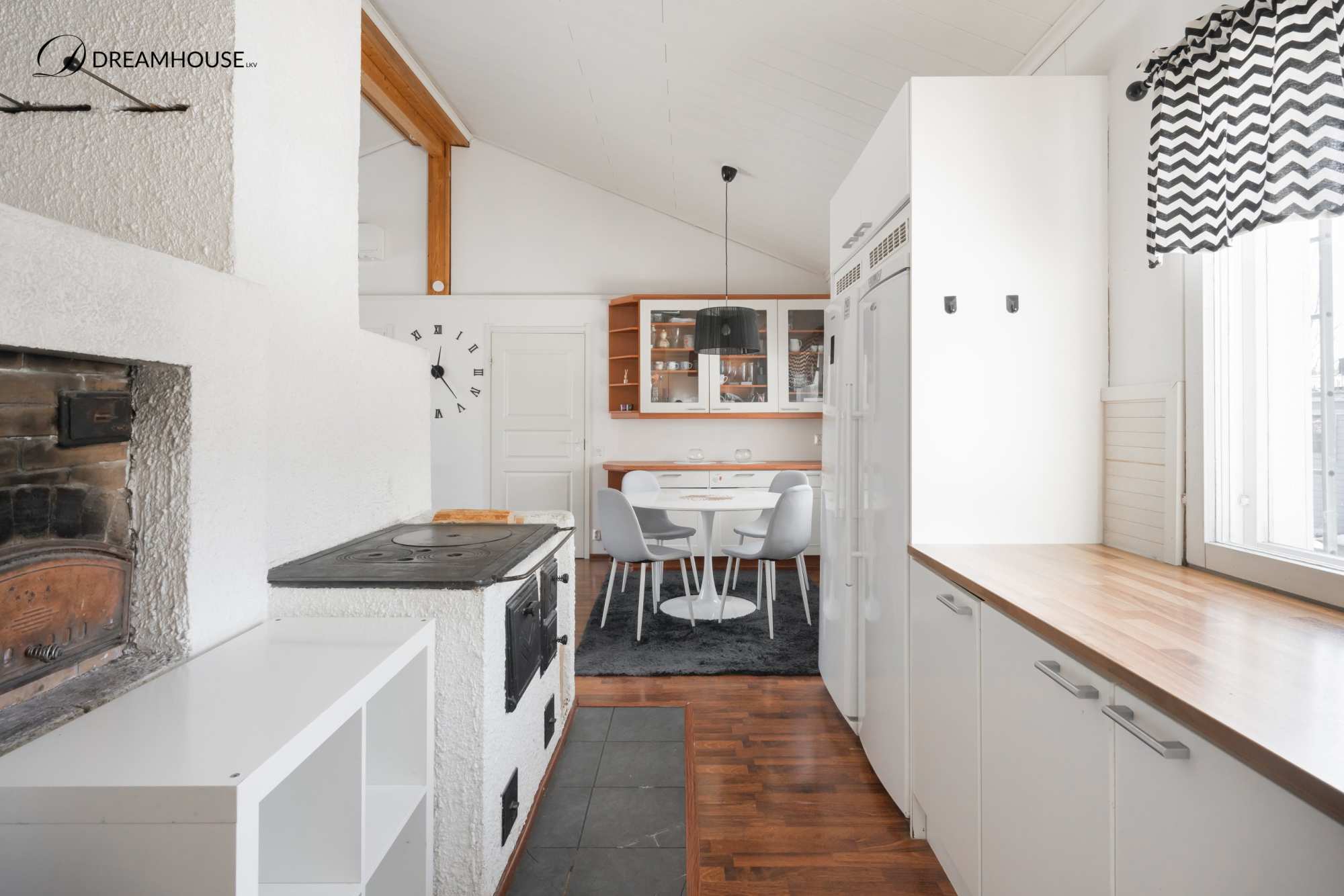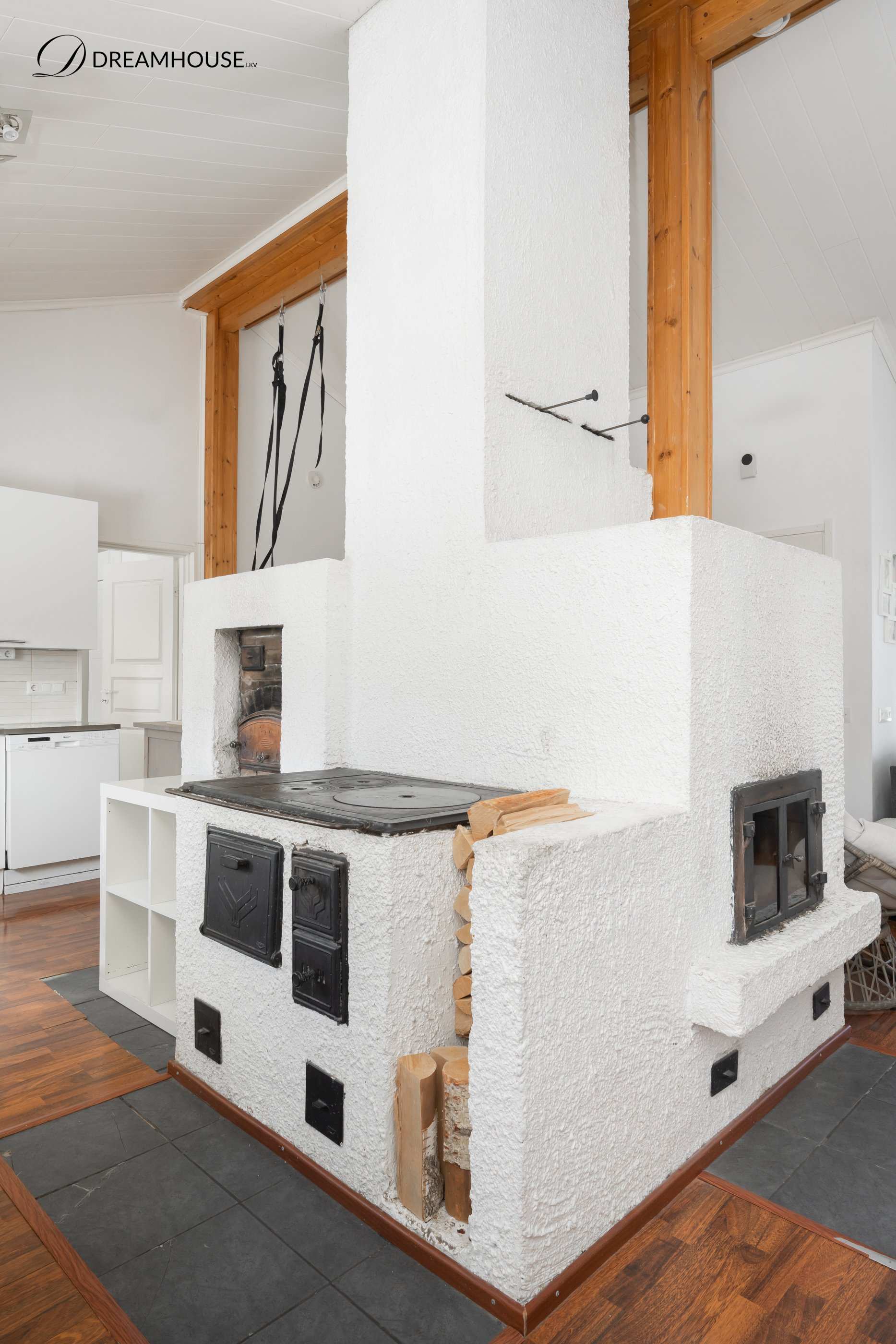 Talo sijaitsee omalla tontilla ja sen 129 asuinpinta-alaa tarjoaa hyvin tilaa isommallekin perheelle. Kodissa on neljä makuuhuonetta, joista yhdessä on oma vaatehuone sekä suora uloskäynti pihalle – täydellinen esimerkiksi teinin huoneeksi, työtilaksi tai vierashuoneeksi. Valoisa olohuone kutsuu viihtymään, ja tunnelmaa luo varaava takka, joka tuo lämpöä ja kodikkuutta. Keittiöstä löytyy kaikki tarvittavat kodinkoneet arjen sujuvuuteen ja lisäksi puuhella ja leivinuuni!.