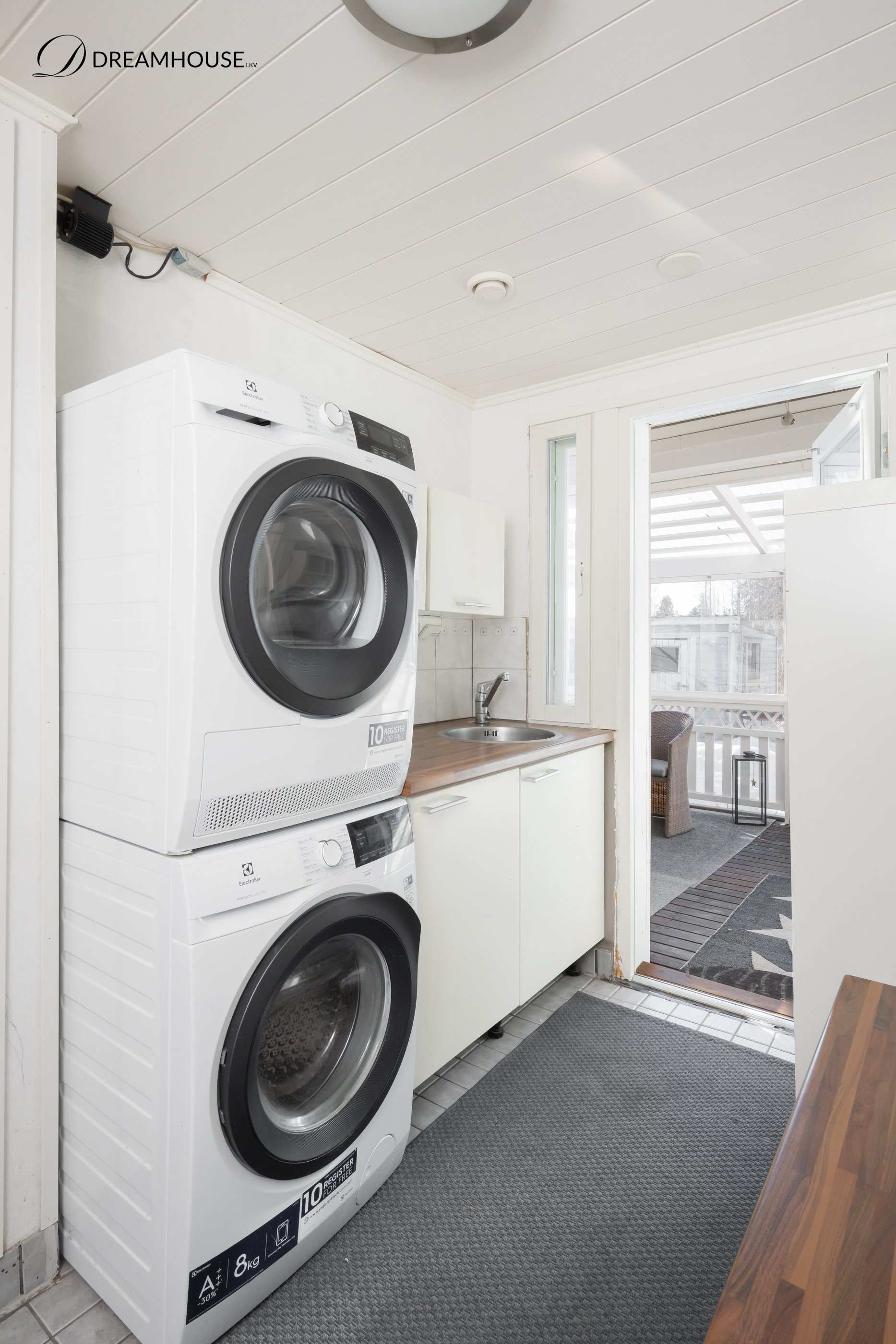 | Kodinhoitohuoneen varusteet | Pesukoneliitäntä, lattialämmitys, pesuallas, pöytätaso ja tila pesutornille |