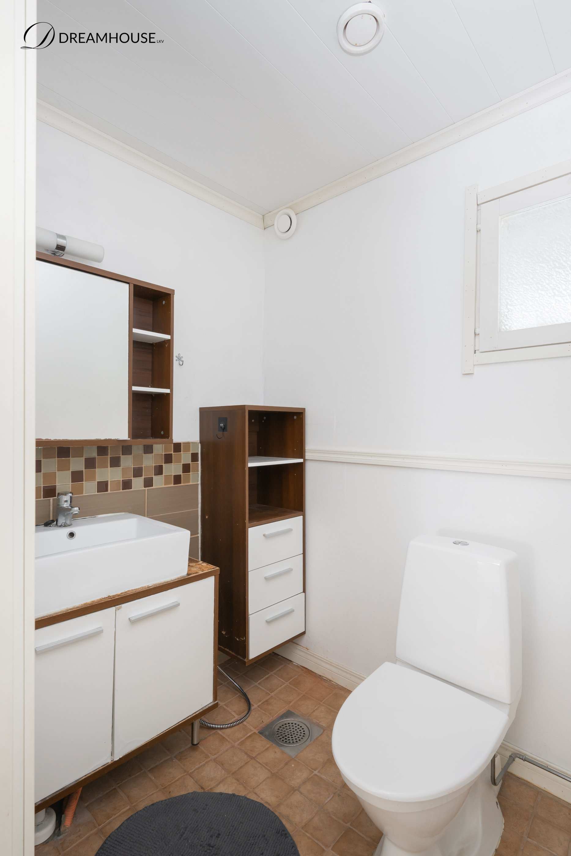 | Kylpyhuoneen materiaalit | Lattia: Laatta Seinät: Kaakeli |