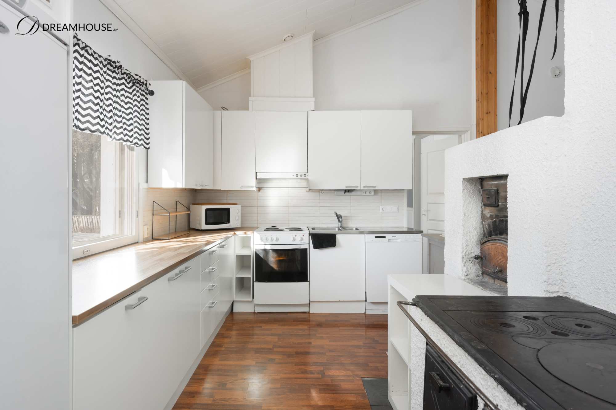 | Keittiön varustus | Liesi/uuni: Sähköhella, puuhella ja leivinuuni |