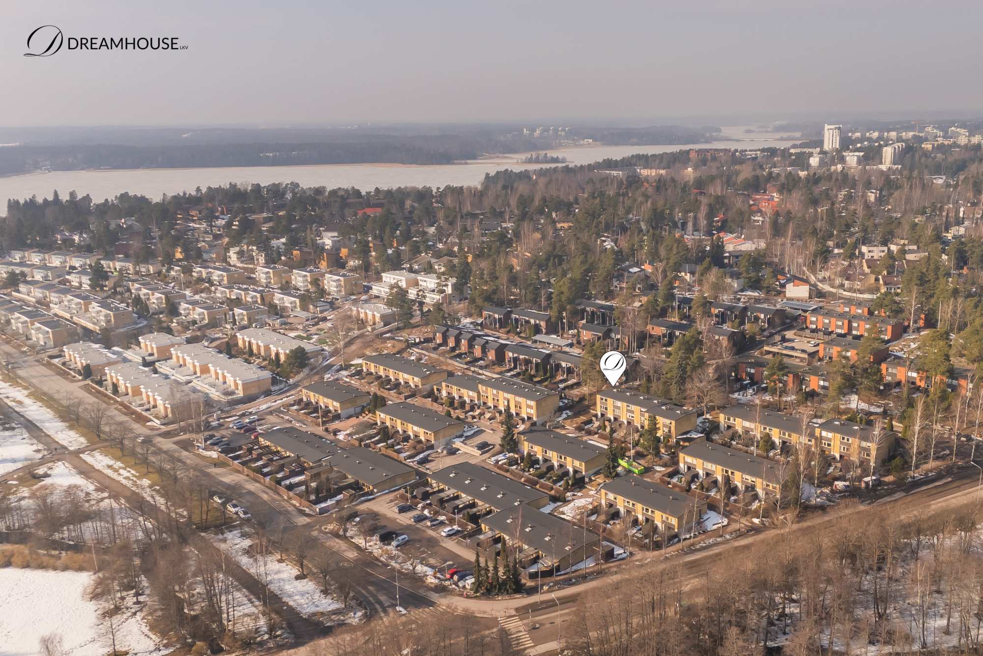 Tämän kodin sijainti on monien haaveilema, meren vieressä lähellä kaikkia palveluita. Kauppakeskus Lippulaiva on ihan lähellä ja länsimetron lähin pysäkki on lyhyen kävelymatkan päässä. Laurinlahti tunnetaan rauhallisena asuinalueena, jossa on hyvä koulu ja päiväkodit. Ruotsinkieliset koulut ovat myös ihan vieressä. Espoonlahden urheilupuisto ja rantaraitti ovat vain muutaman askeleen päässä.