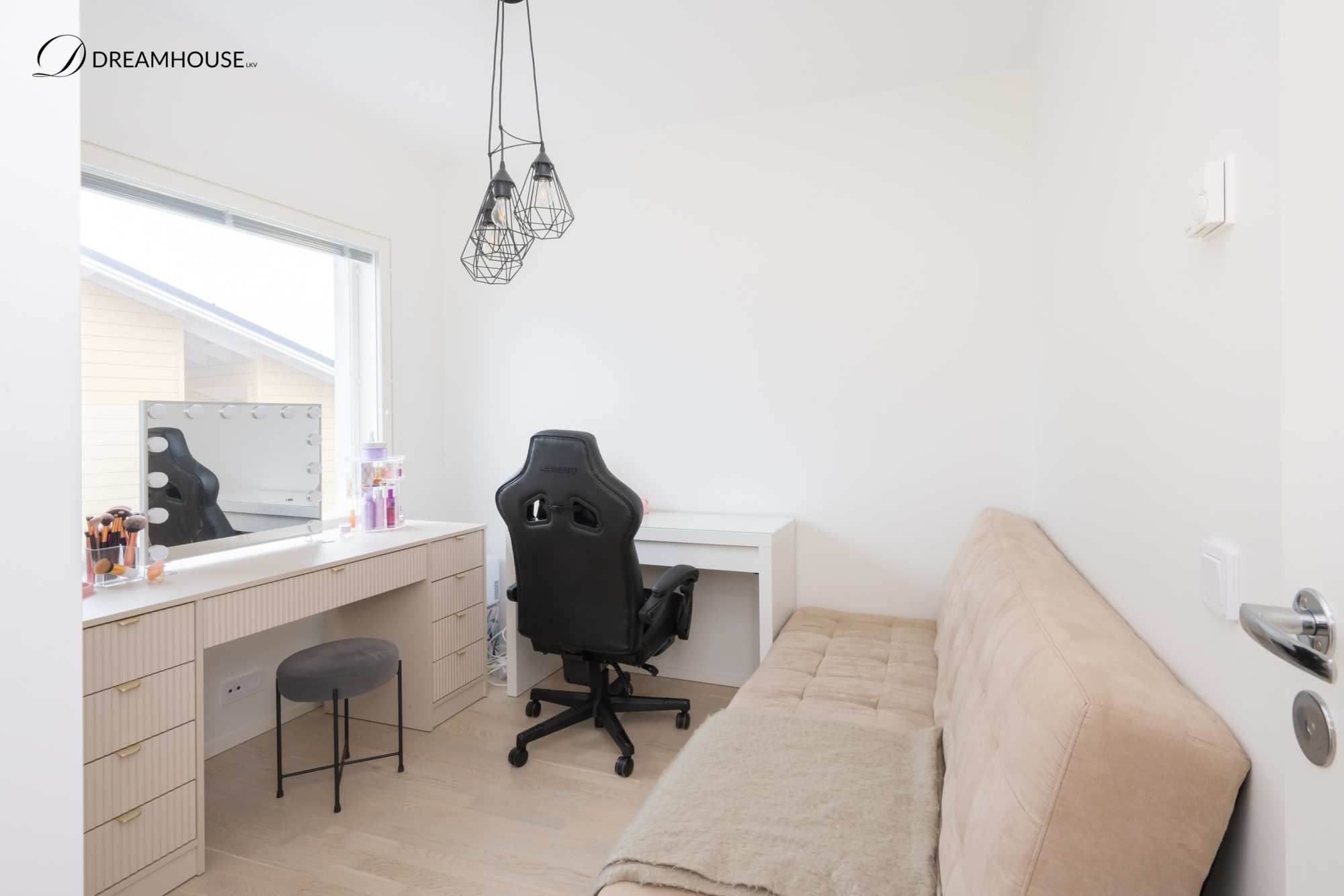 Kolme makuuhuonetta tarjoavat rauhalliset puitteet lepoon, ja yksi lisähuone muuntuu joustavasti esimerkiksi walk-in vaatehuoneeksi tai etätyöpisteeksi.