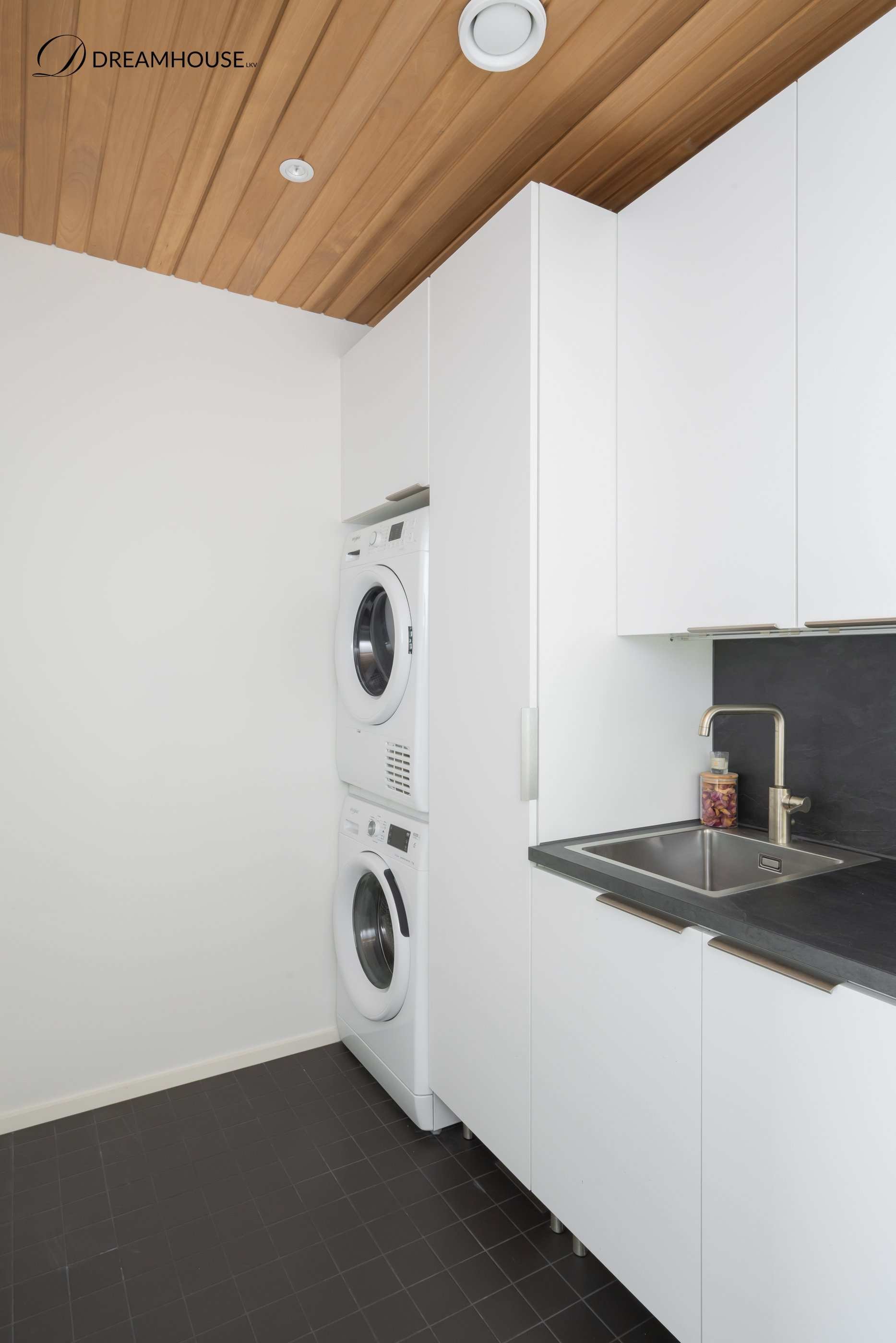 | Kodinhoitohuoneen varusteet | Pesukoneliitäntä, lattialämmitys, pesuallas, pöytätaso ja tila pesutornille |