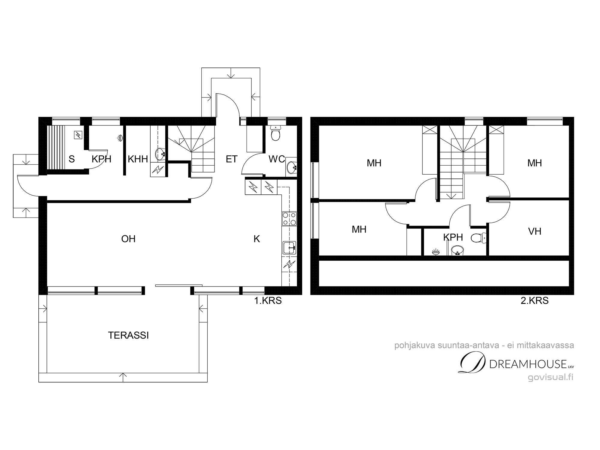 Olohuone ja keittiö yhdistyvät kauniiksi ja toimivaksi kokonaisuudeksiPohjakuvaKeittiö ja ruokailutilaKeittiöErillinen wc tila alakerrassaKodinhoitohuone ja kylpyhuone sekä saunaKodinhoitotilassa tilaa pesutornilleSauna ja suihku alakerrassaMakuuhuone 1Makuuhuone 2Makuuhuone 3Yläkerrassa tila vaatehuoneelle, työtilalle tai kuntoiluhuoneelleSuihku ja wc yläkerrassaKatettua terassitilaa