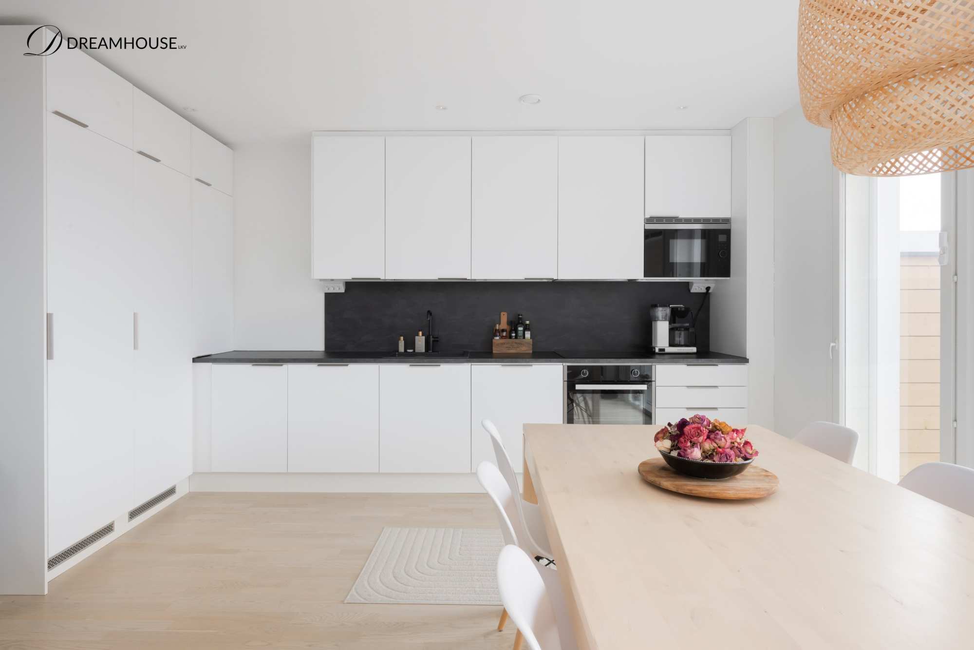 Kodin sydämessä avautuu upea, yhtenäinen oleskelutila, jossa keittiö, ruokailutila ja tilava, valoisa olohuone muodostavat täydellisen ympäristön arjen ja juhlan hetkiin. Iso olohuone kutsuu viettämään aikaa yhdessä – lasten leikit, perheen yhteinen arki ja ystävien kanssa jaetut hetket sulautuvat saumattomasti samaan tilaan.