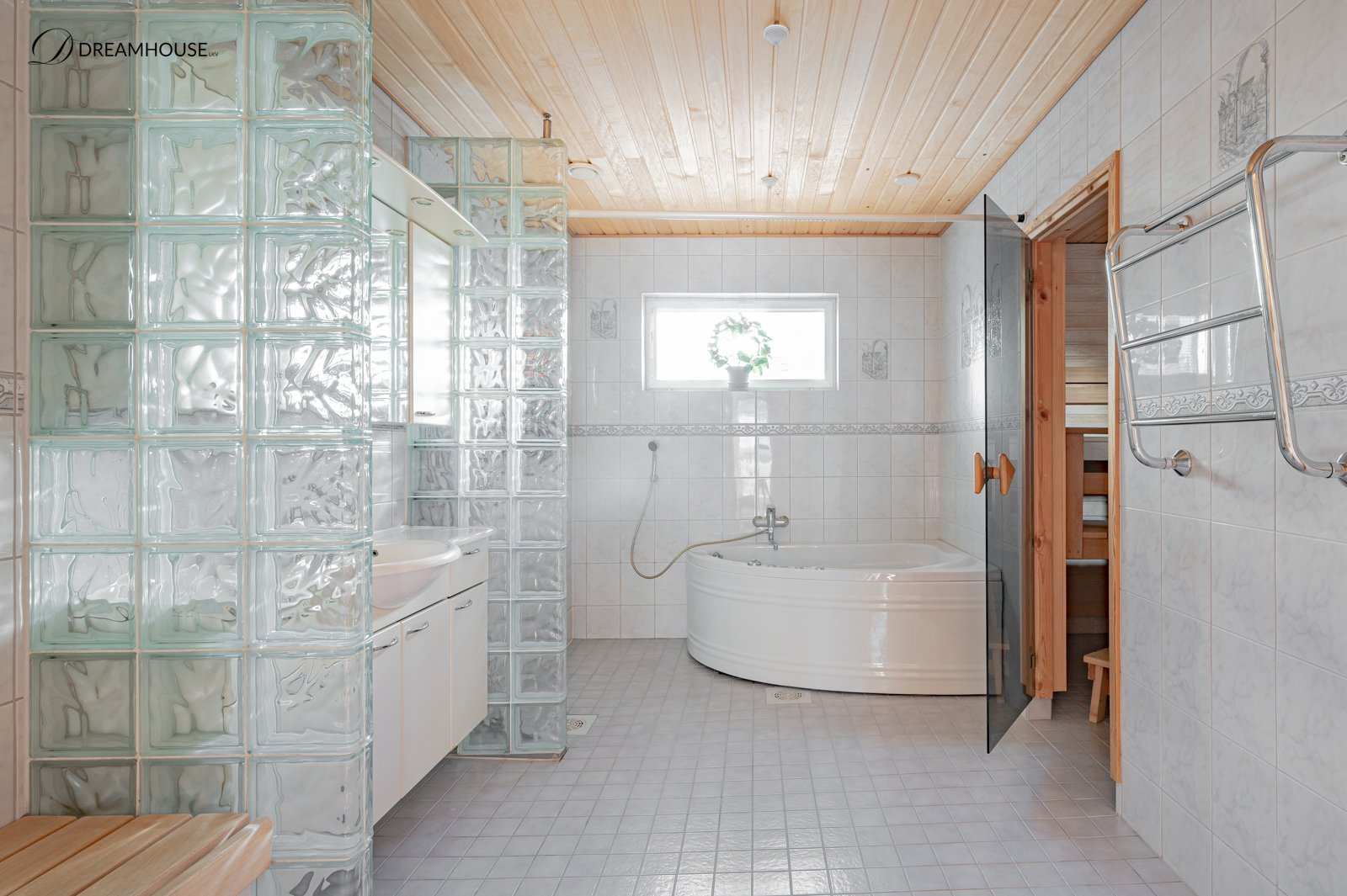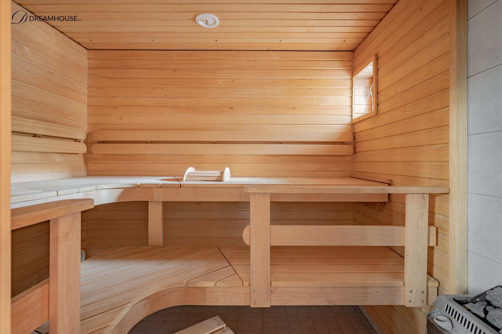 Kylpyhuoneessa on poreallas ja kaksi suihkua, jotka tarjoavat luksusta arkeen. Lisäksi iso sauna. Talossa on myös kolme erillistä wc:tä sekä iso erillinen kodinhoitohuone mikä helpottaa perheen arkea..