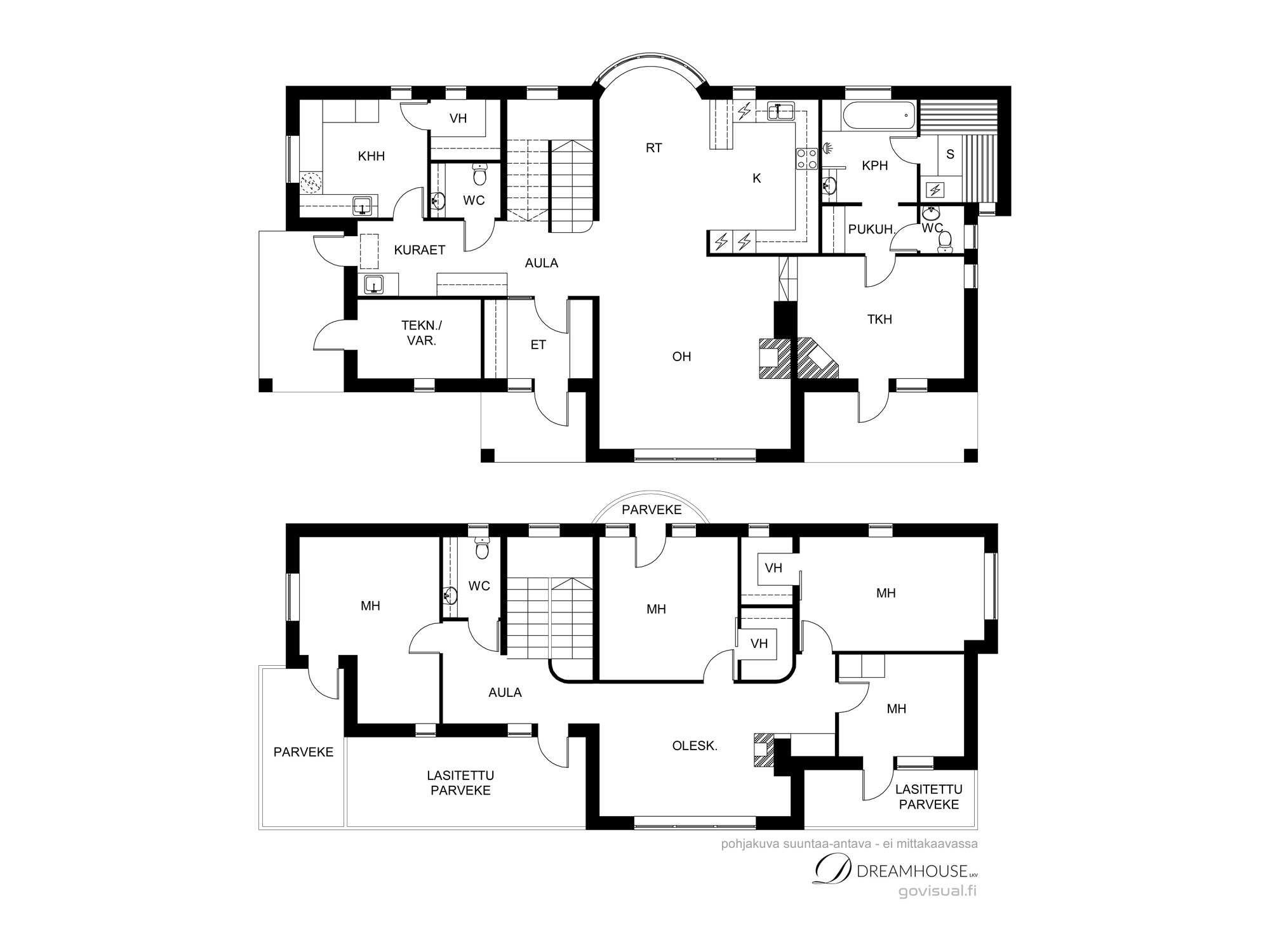 | Huoneistoselitelmä | 6h, k, rt, aula, khh, kph, s, 3 x wc, 3 x vh, autokatos |