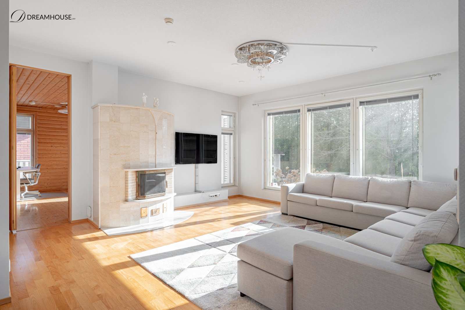 | Olohuoneen materiaalit | Lattia: Parketti |