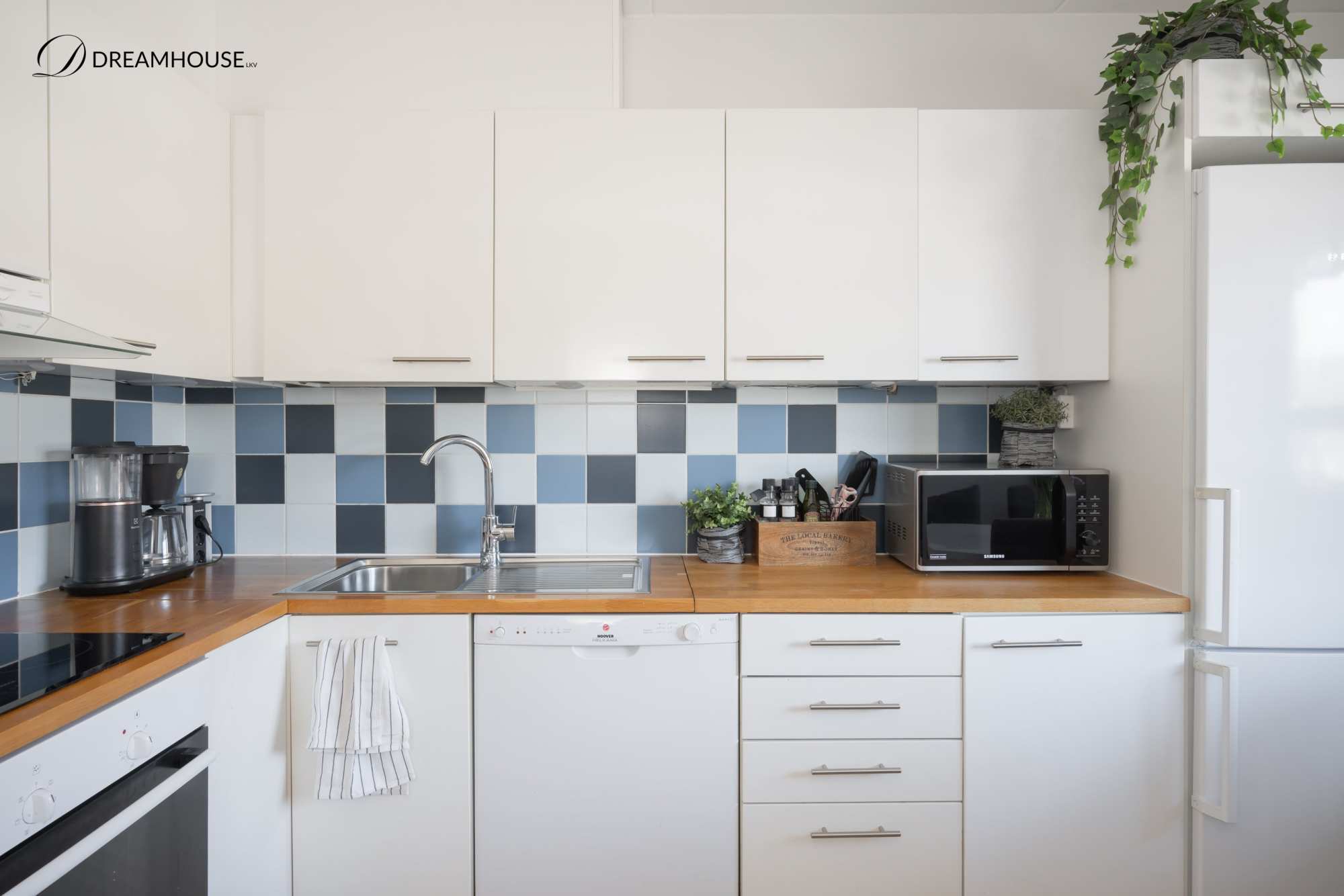 | Keittiön varusteet | Jääkaappipakastin, uuni, liesi, astianpesukone ja liesituuletin |