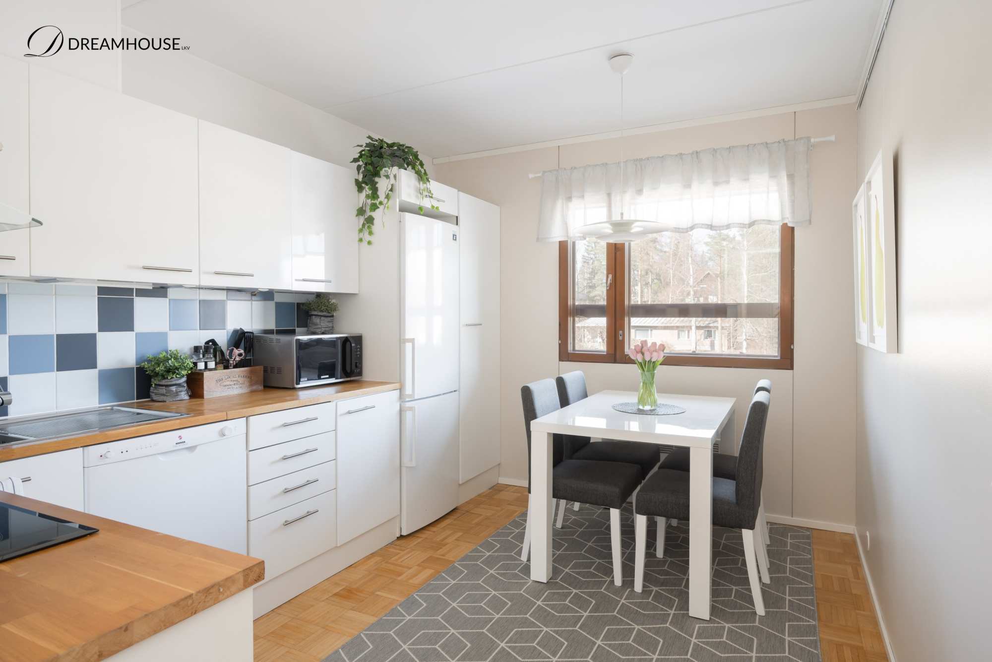 | Keittiön materiaalit | Lattia: Parketti Seinät: Maali |