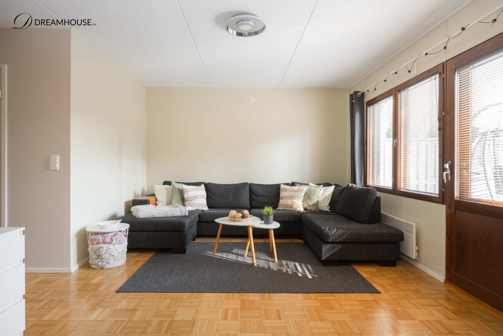 | Olohuoneen materiaalit | Lattia: Parketti Seinät: Maali |