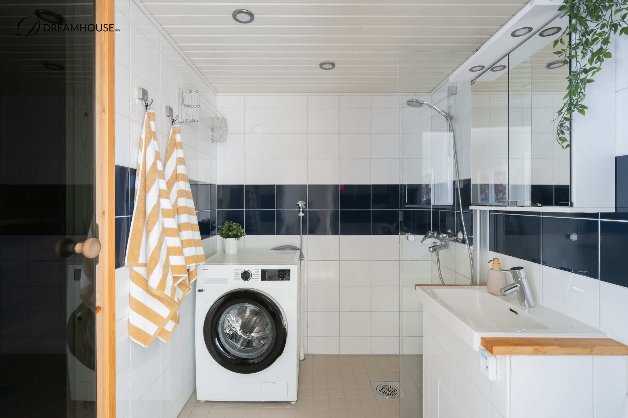 | Kylpyhuoneen varusteet | WC-istuin, suihkuseinä, pesukoneliitäntä, lattialämmitys, pesuallas, peilikaappi, allaskaappi, bidee-suihku ja suihku |